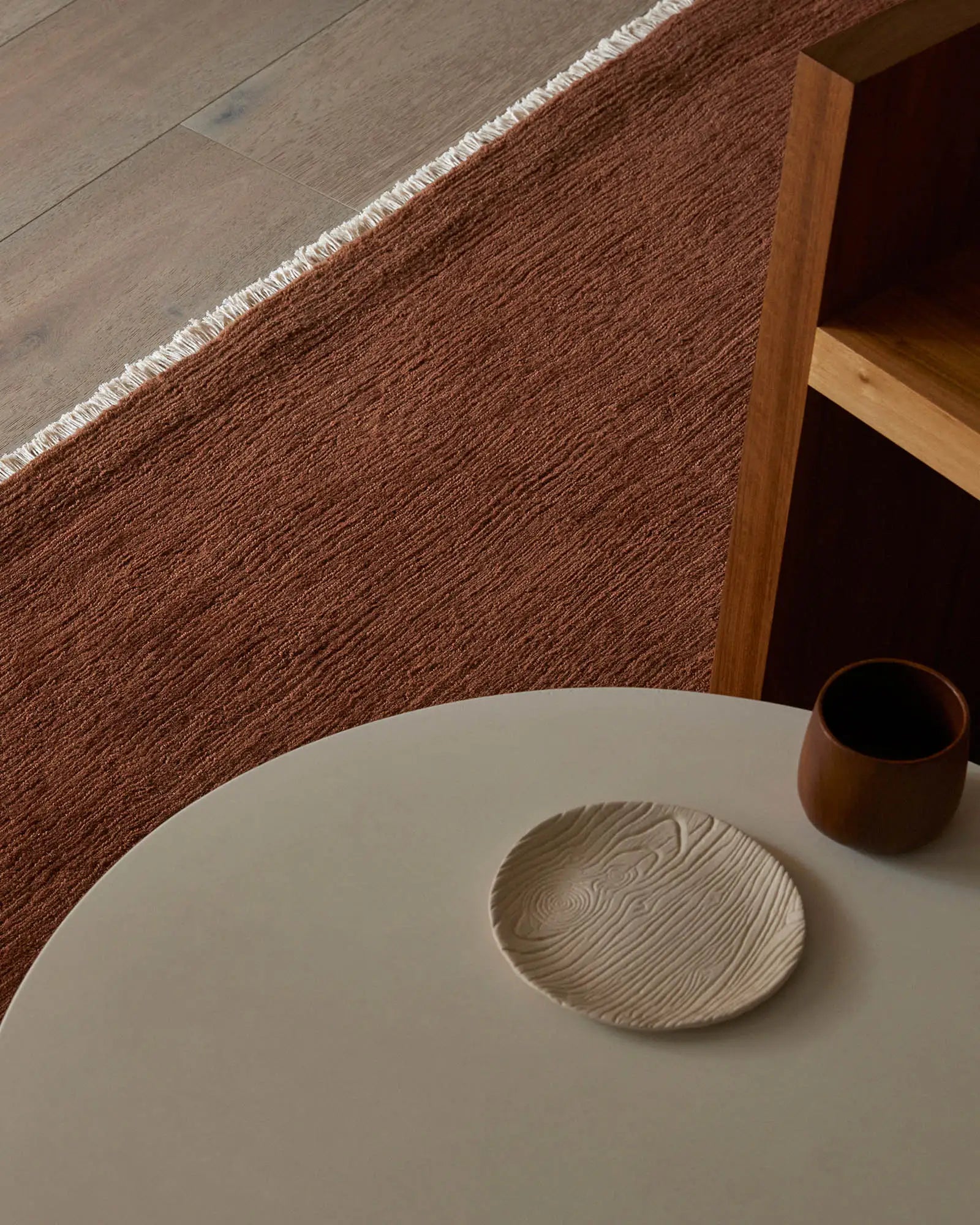 Add elegance to your space with the Alessandre rug, handcrafted from 100% wool. Featuring a unique linear texture produced with a mix of cut and loop pile and refined fringe detail, this rug enhances any room with timeless sophistication. The durable cotton backing ensures lasting quality.