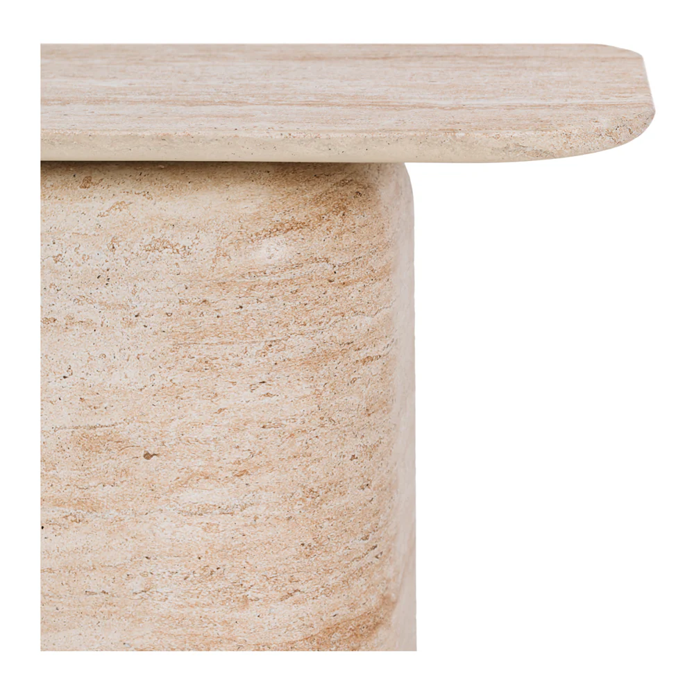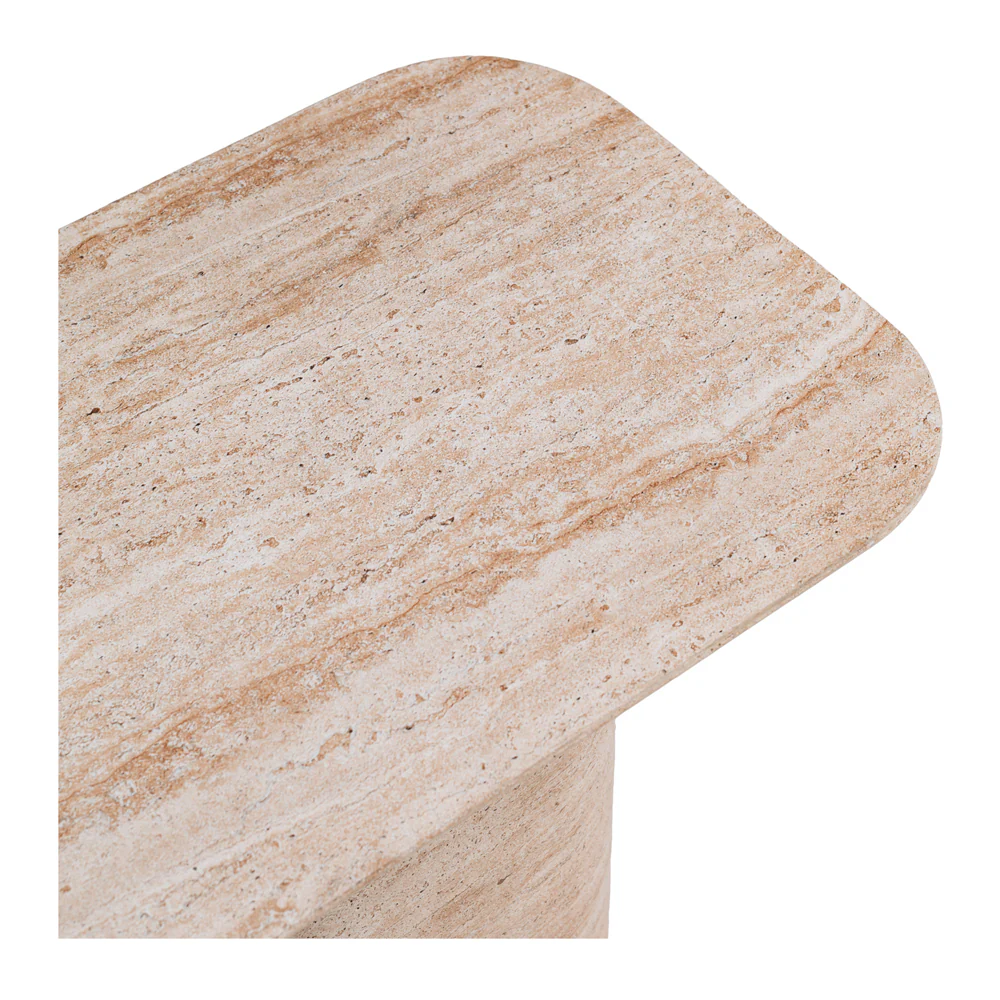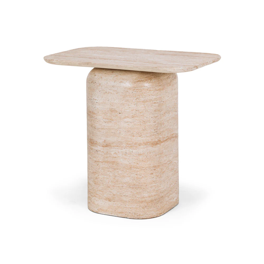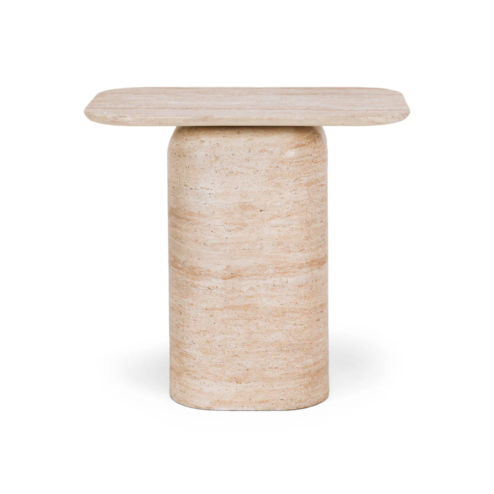 Bringing the organic beauty of travertine with the strength and affordability of concrete, this side table is a statement of refined simplicity. Designed to mimic the soft, natural veining and warm texture of real travertine, it offers the high-end look of stone—without the hefty price tag.