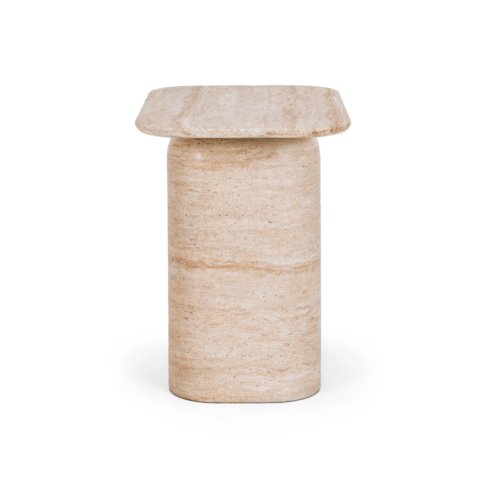 Finished with an acid-cured treatment and a double-layer protective sealant, the surface is smooth yet subtly textured, capturing the earthy charm of travertine while ensuring everyday practicality. The result? A piece that feels both raw and sophisticated, perfect for modern, contemporary, or minimalist interiors.