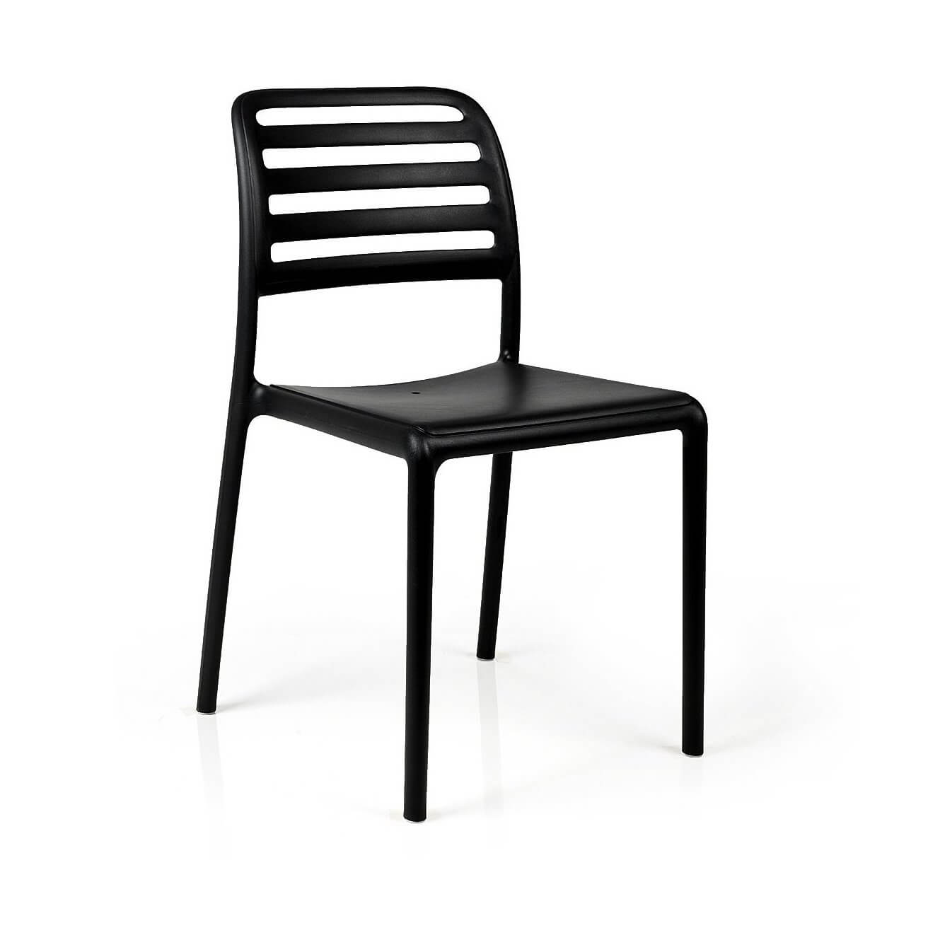 The Costa Bistro Chair’s slat ladder rung back with striking lines & curves combine to result in a visually appealing contemporary armless chair that furnishes indoor and outdoor spaces elegantly. Designed & constructed in Italy from top-grade outdoor safe polypropylene & fiberglass resin that’s UV & weather resistant.