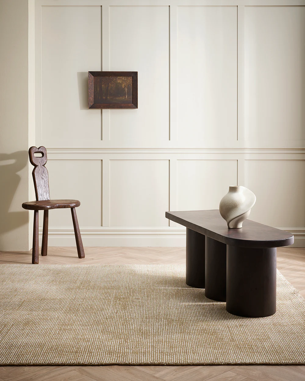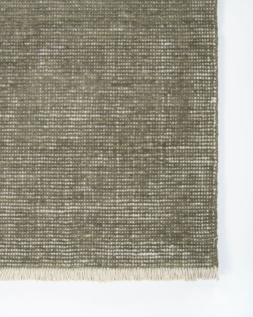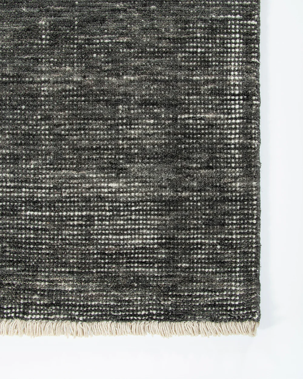 Handcrafted from pure New Zealand wool, the Corbett rug’s lightly distressed design and soft charcoal tone are perfect for creating contemporary living spaces. Featuring a short fringe and minimal pile height, the vintage character adds ambience and mottled texture to living spaces.