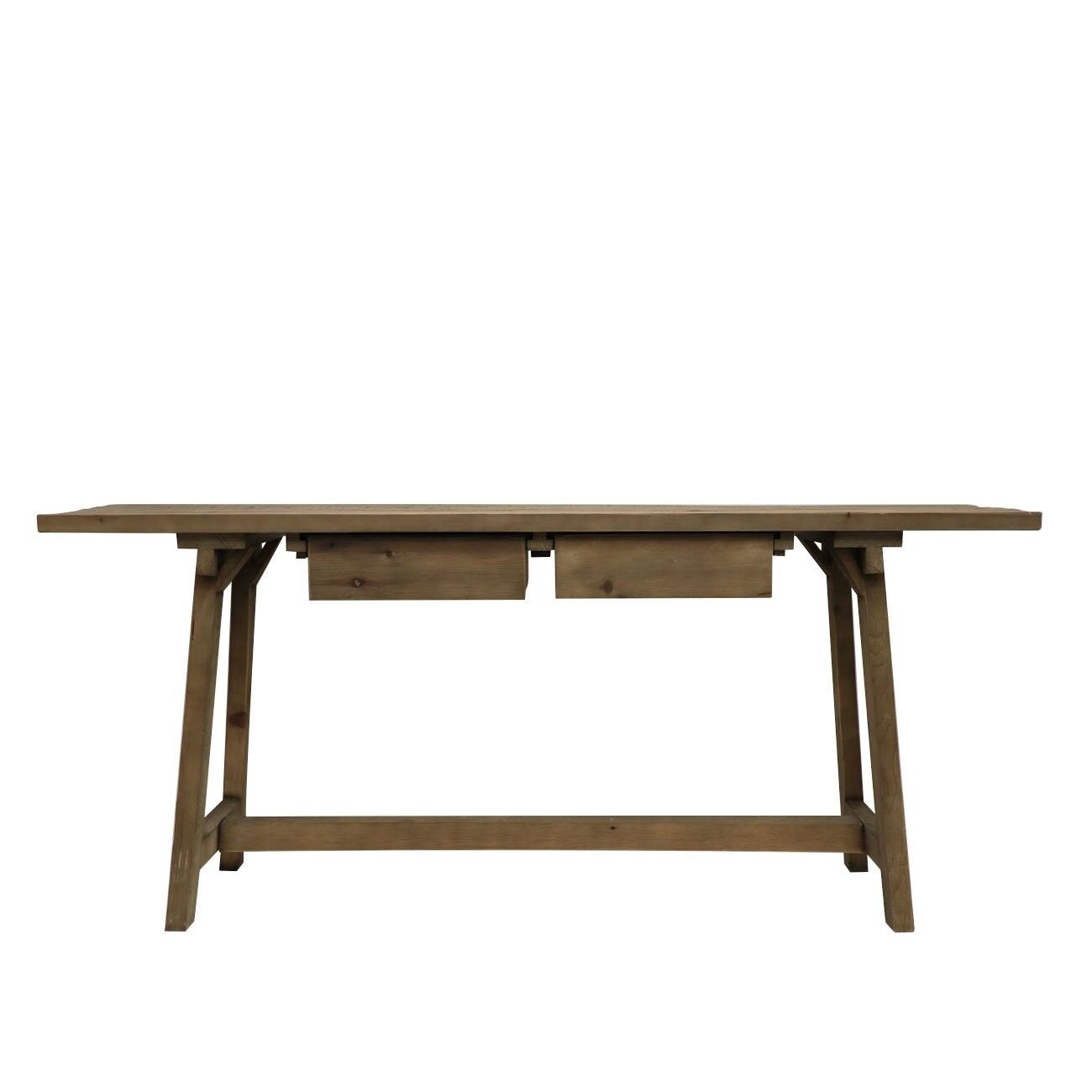 Industrial inspired, the Cresta console features two hand-less drawers and sits atop farmhouse style legs. Long and narrow, Cresta could also be utilised as a slimline laptop desk.