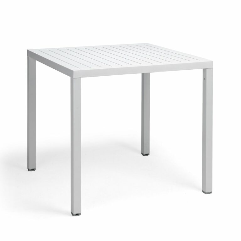 The Cube 80 in a mono-colour White is a small 800mm X 800mm dining table that seats 4, perfect for areas with limited space. The top is constructed of high-grade polypropylene & fiberglass resin that’s weather resistant, filled with UV protection additives and easy to maintain. The legs are comprised of outdoor safe powder coated aluminium. The Cube is proudly made & designed in Italy.