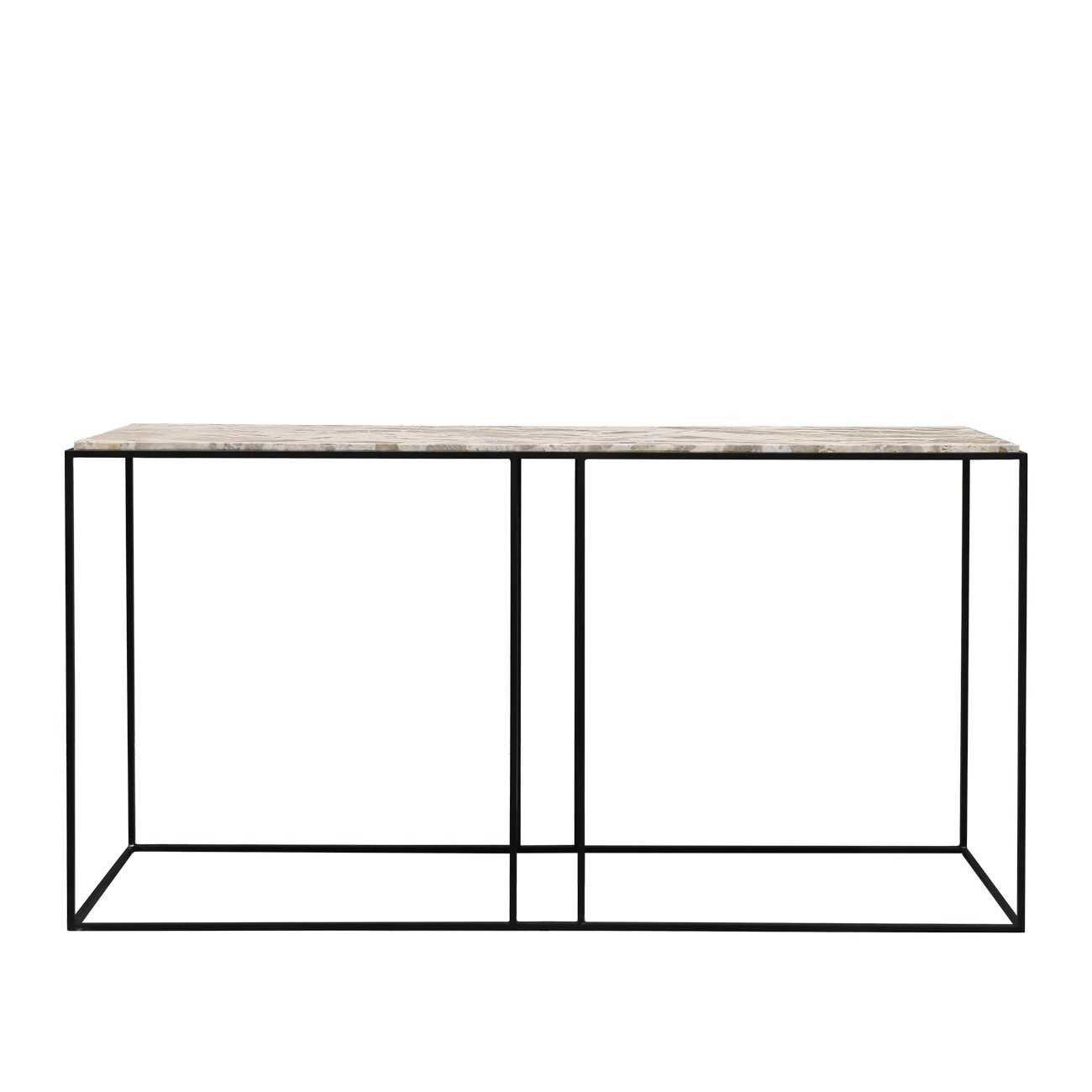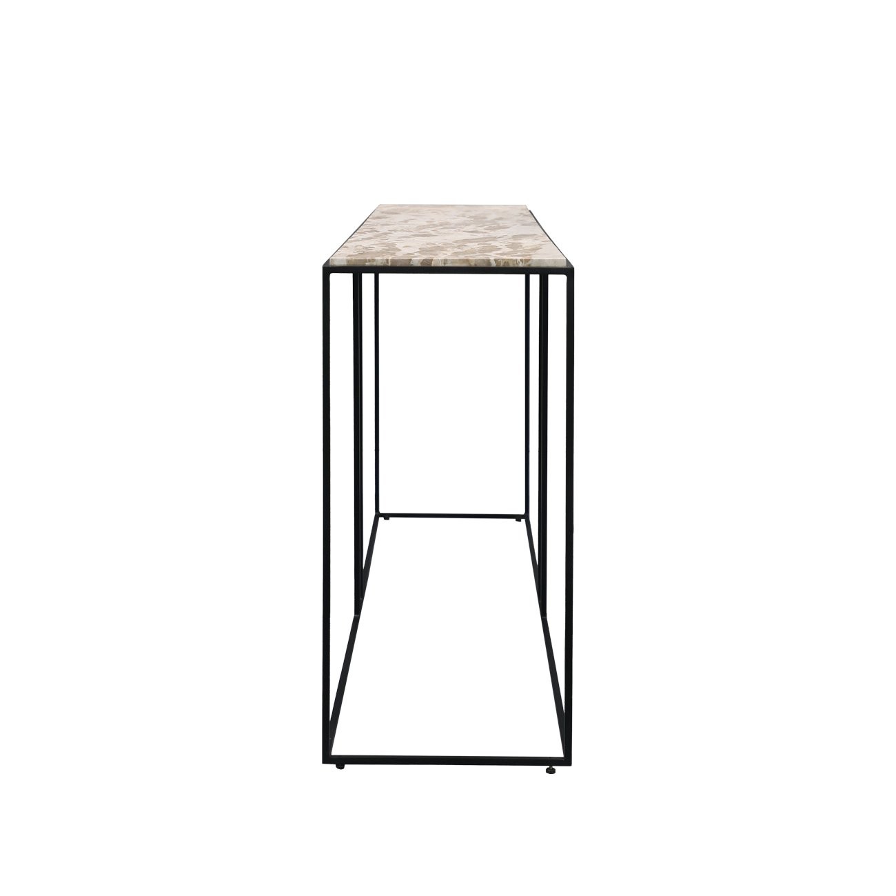 Embrace the beautiful multi-tonal effect of beige marble, inset and framed by sleek black powdercoated steel creating a stunning focal point for any living space.  Each piece of marble is unique, with captivating visual appeal and exuding sophistication and style.  Perfect for displaying one or two individual pieces, this console table adds a touch of luxury to your home decor.