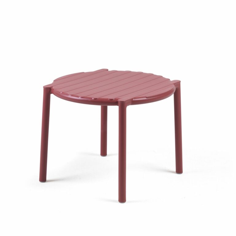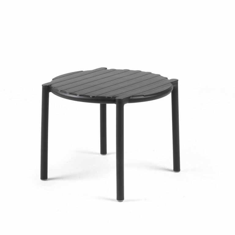The Doga Coffee Table boasts a dynamic & versatile circular shape, and table top design that was inspired by classic slatted outdoor tables. Outdoor safe, its construction material is UV resistant polypropylene & fiberglass resin that’s both commercial grade and fully recyclable, ensuring that at the end of its lengthy service there’s minimal environmental impact. This small round outdoor side table is ideal for furnishing gardens, private terraces, patios, decks and outdoor seating areas in bars and restaurants.