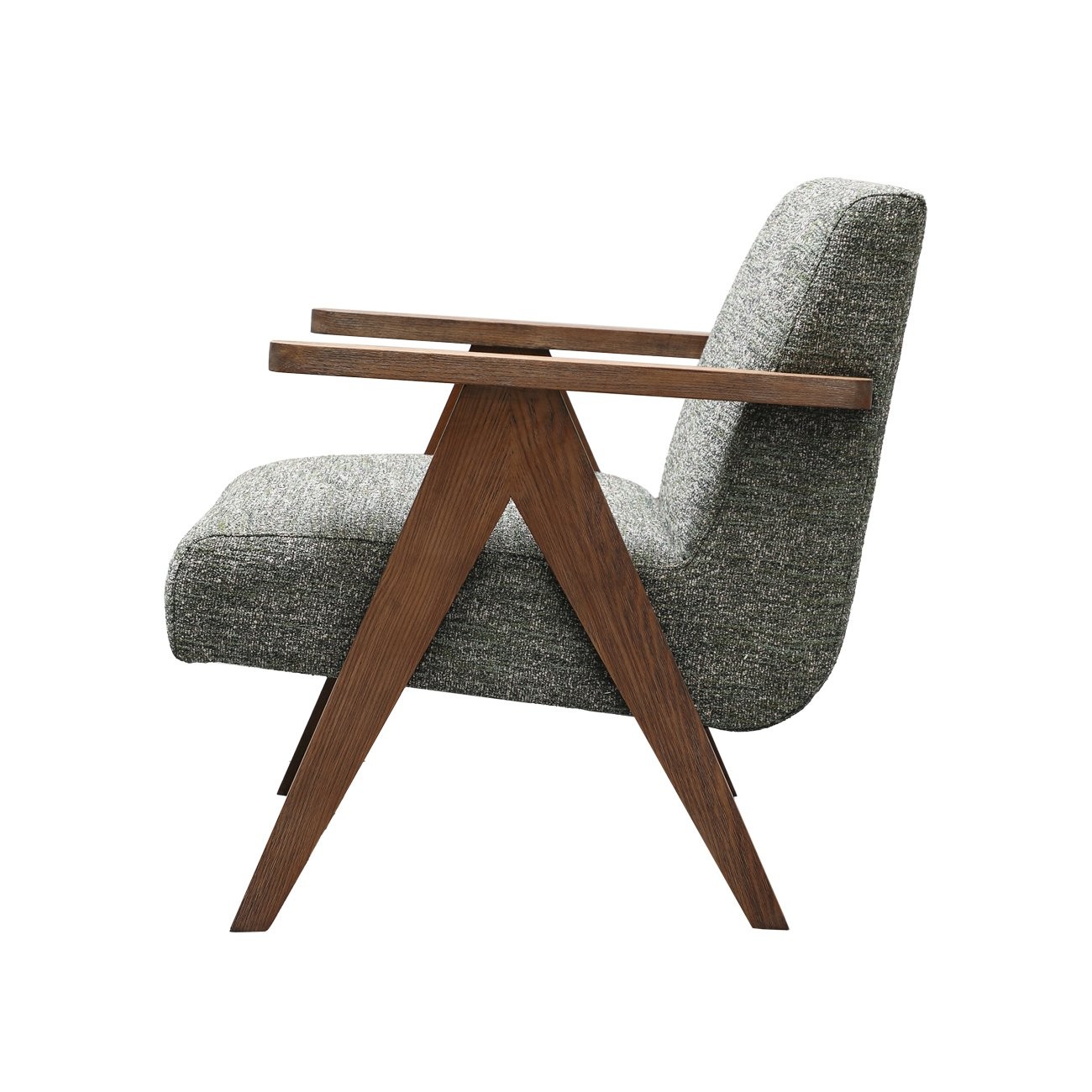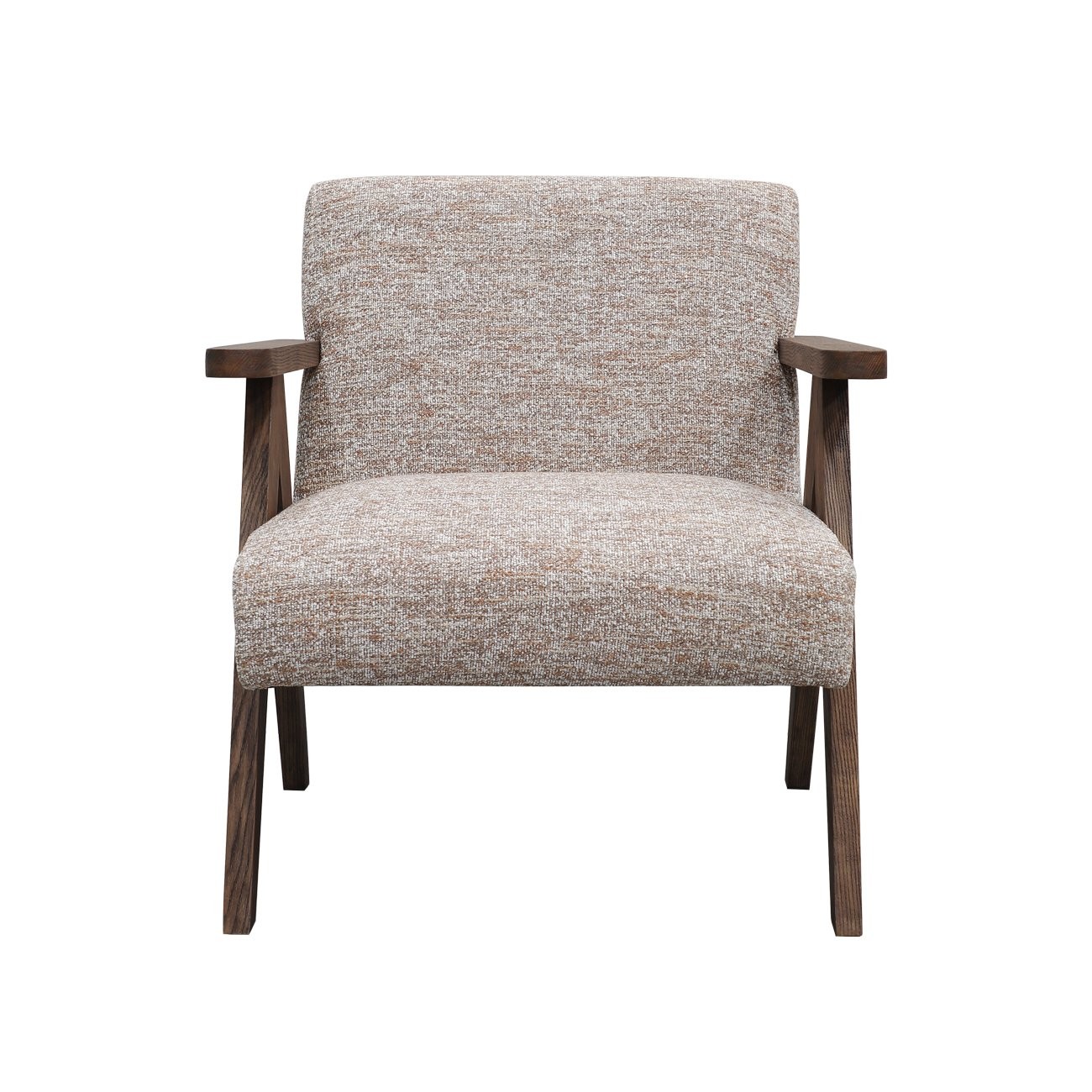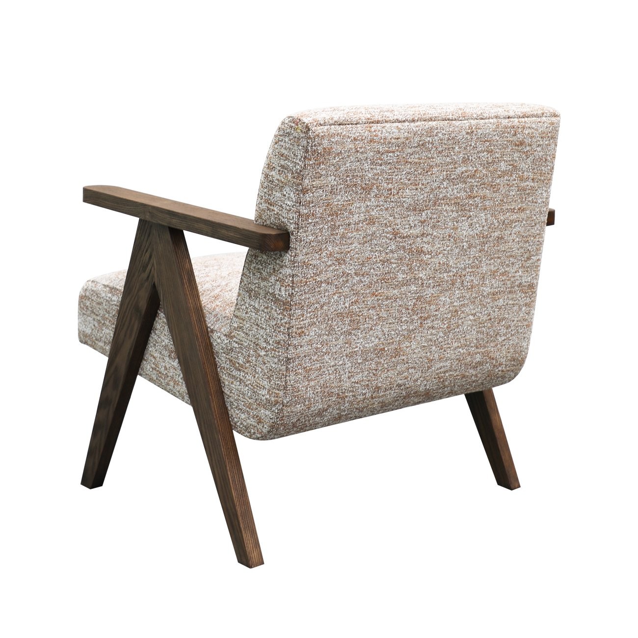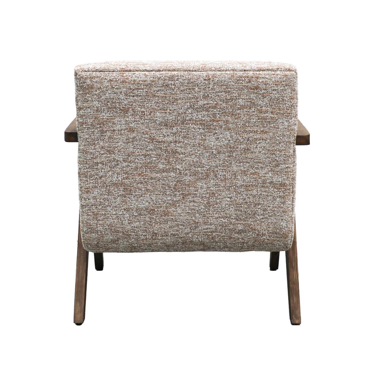 Warm timber colour framework is complemented by the stunning fabric of the Draper armchair. Cream and natural tones combine with contrasting threads, in soft to the touch fabric with texture and dimension.