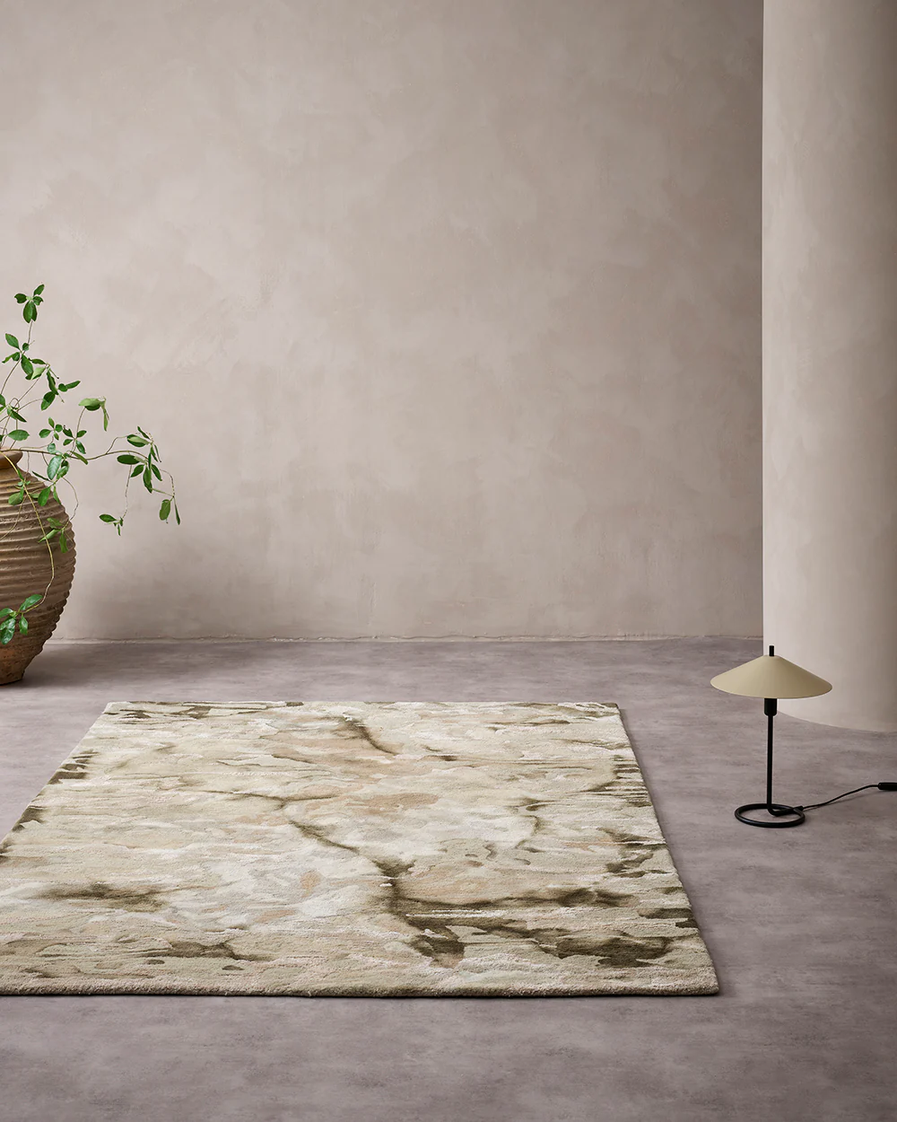 Add a stunning focal point to your space with the distinct design of Fayette. Inspired by forms in nature, the unique patterning is achieved through a specialised over-dyeing process applied to a handtufted base. Handwoven in a soft wool-viscose blend, this luxurious floor rug features gently shimmering details and adds an uplifting sense movement to a space. Pair with khaki, sage and oatmeal to emphasise the tonal beauty of this piece.