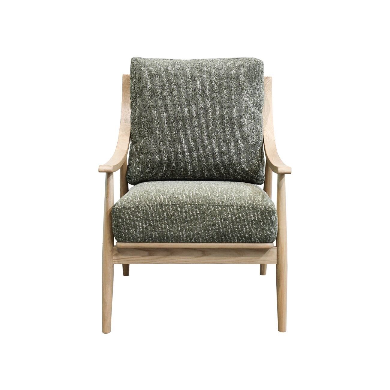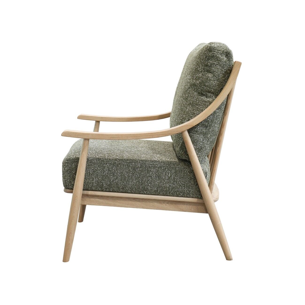 The stunning sculpted oak frame creates a lightweight airy quality which allows the armchair to work well in a number of different settings.