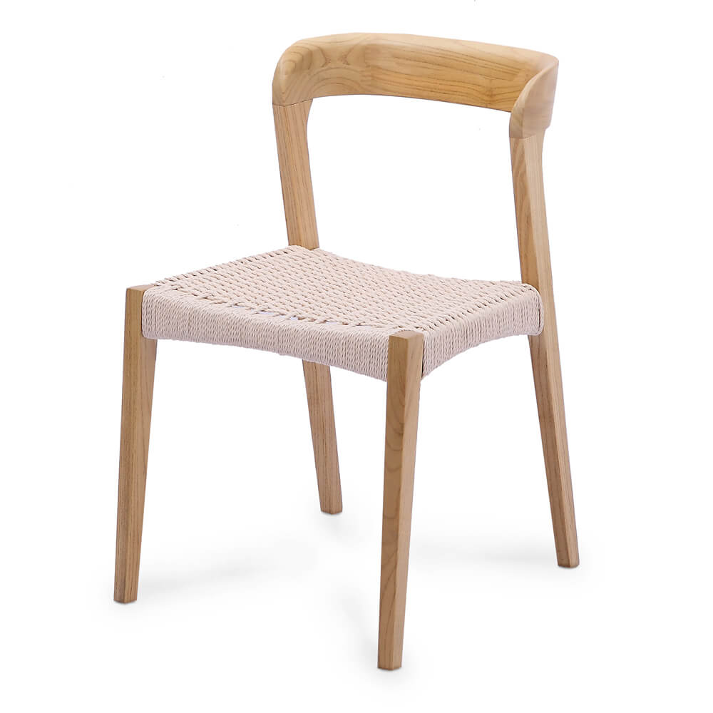 This stylish chair features a natural ash frame with a woven rope seat, making it both comfortable and chic. Perfect for any contemporary dining space, this chair is sure to make a statement.