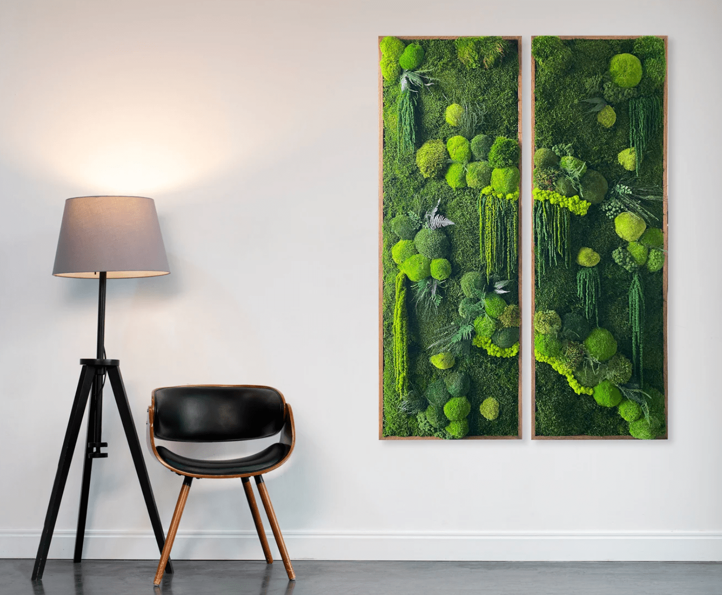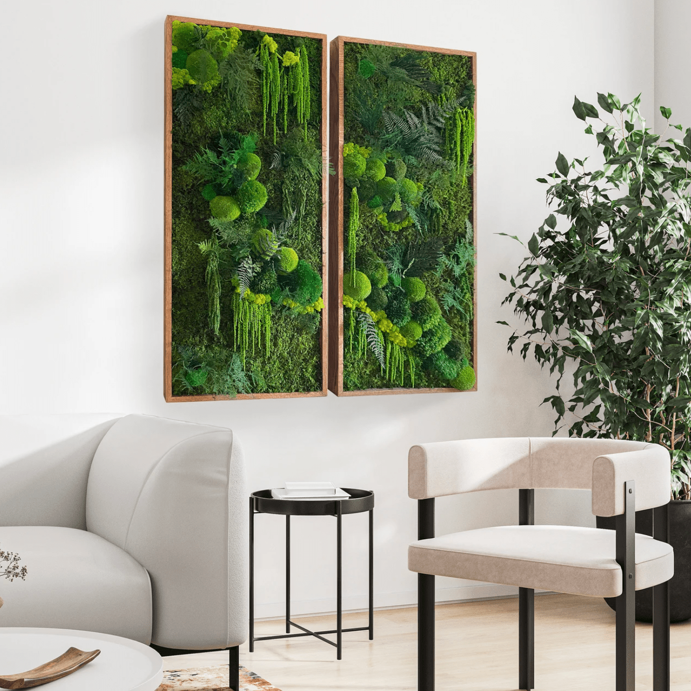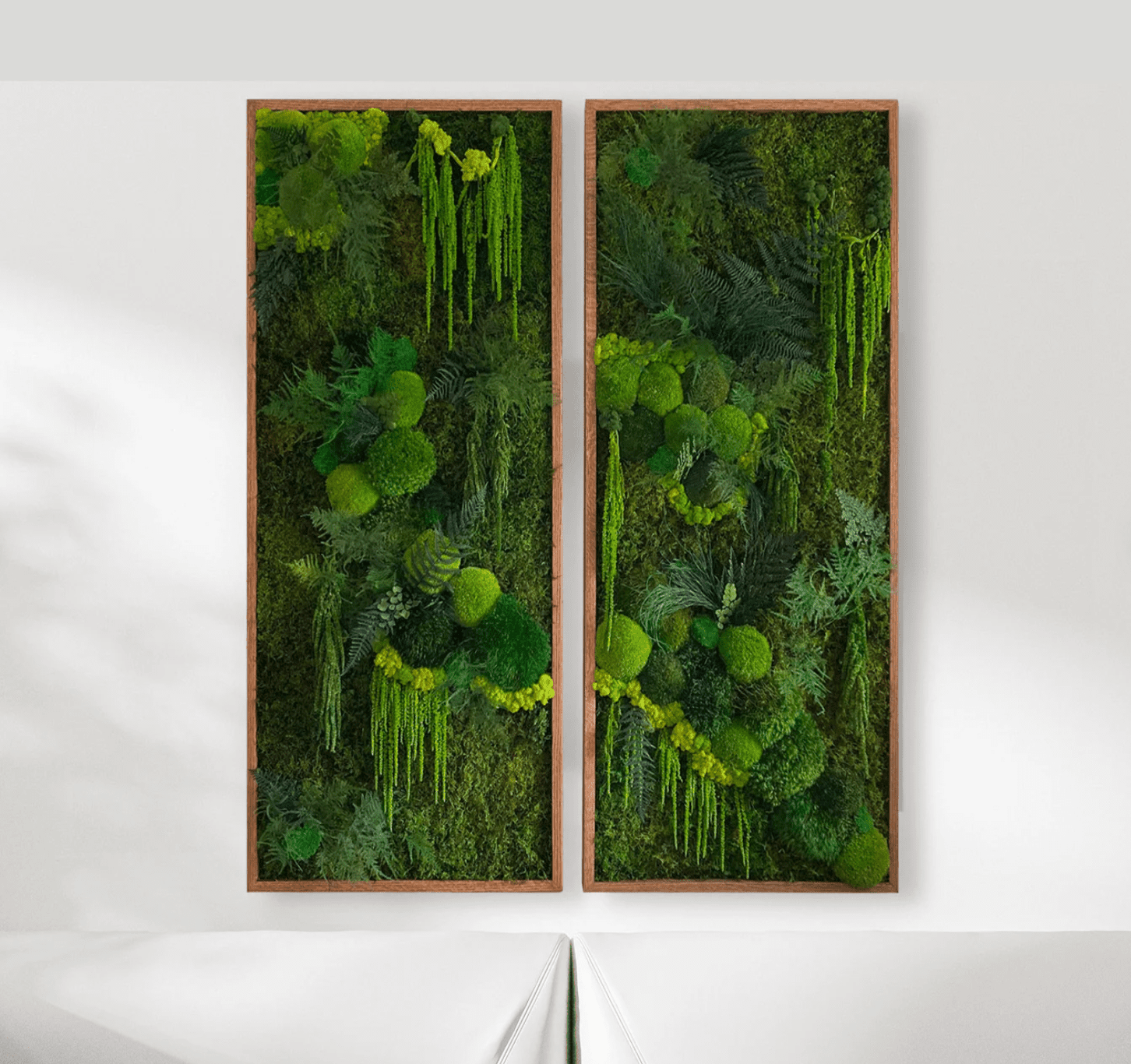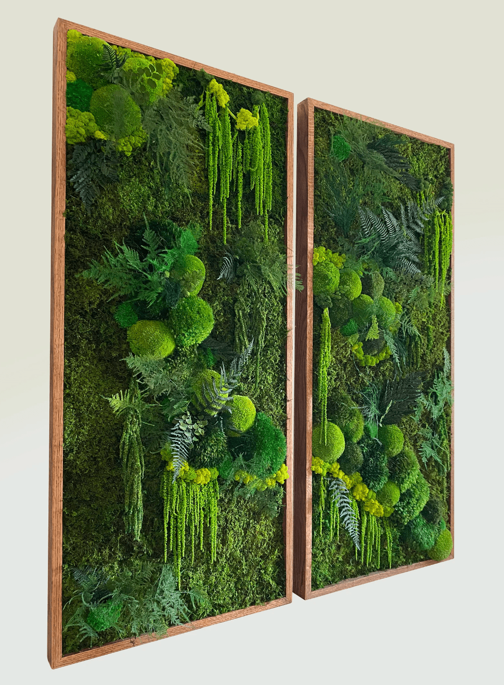 This organic design has a collection of pillow moss, mood moss, and ball moss along with Amaranthus, preserved ferns, and other fern
