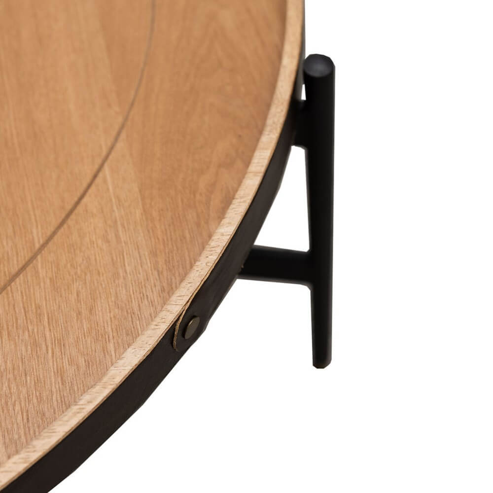Crafted using Ash, leather and powder coated steel, then accented with delicate brass feet and tacks.