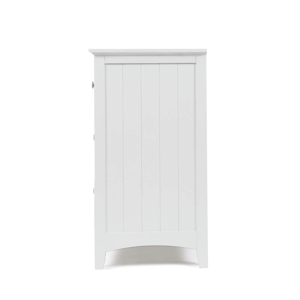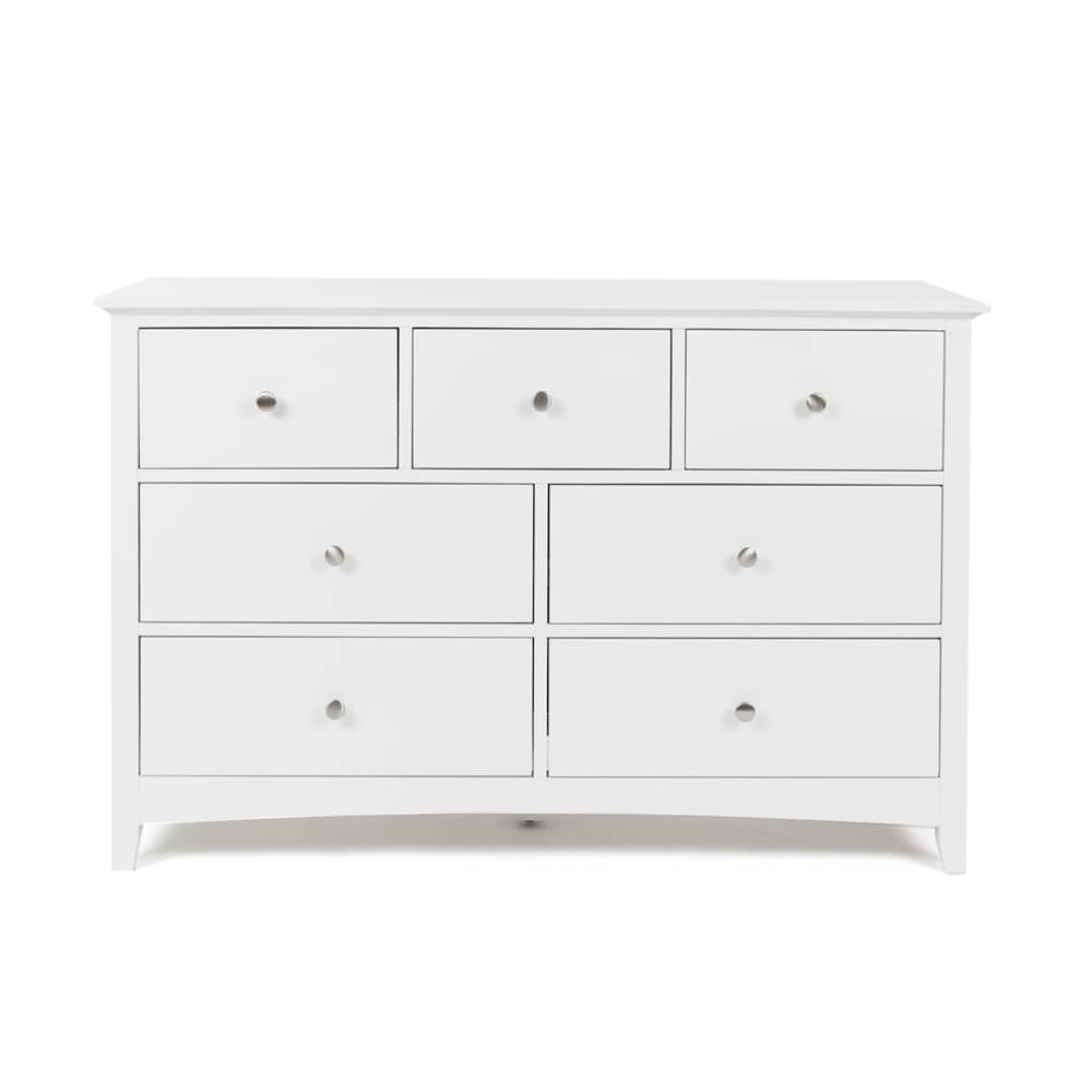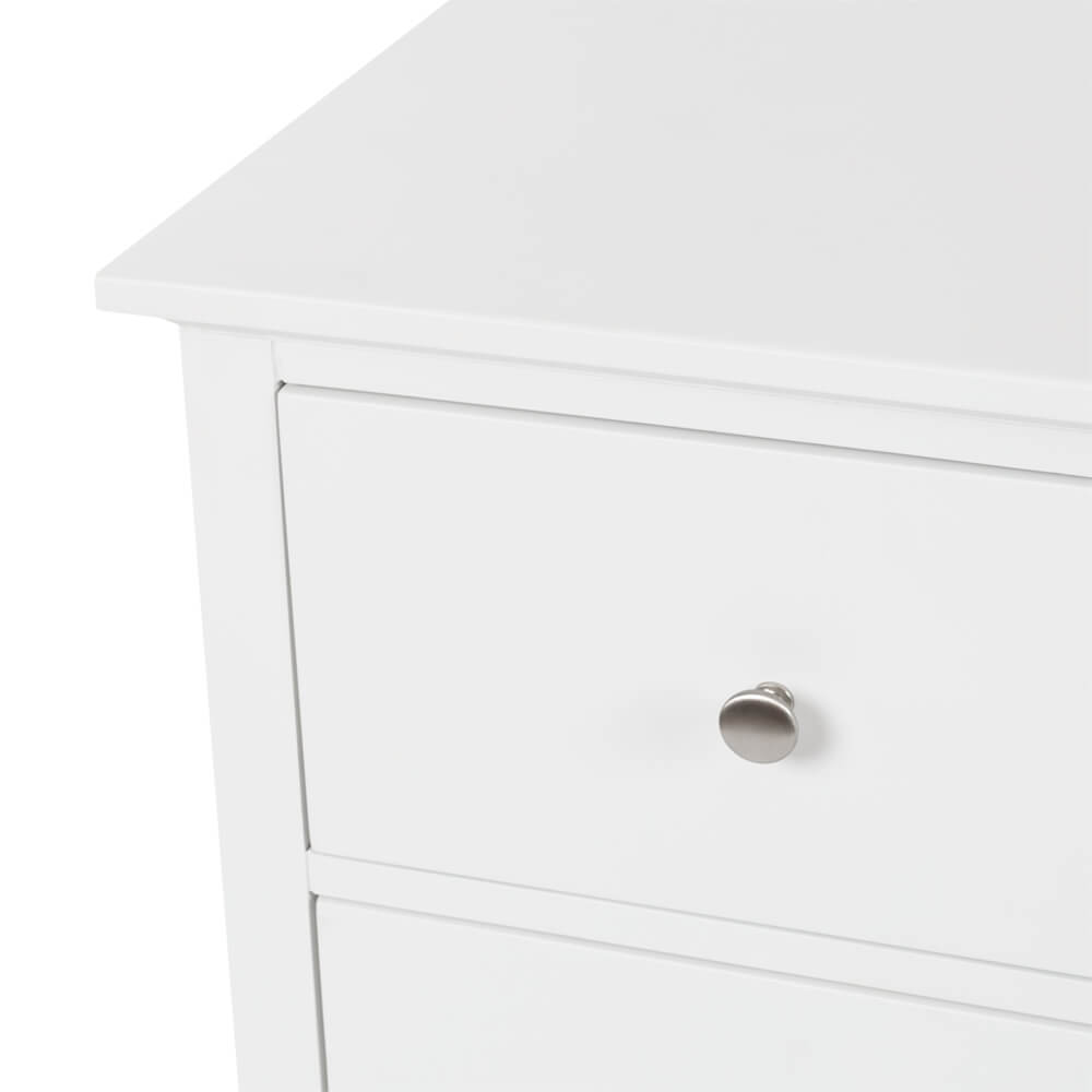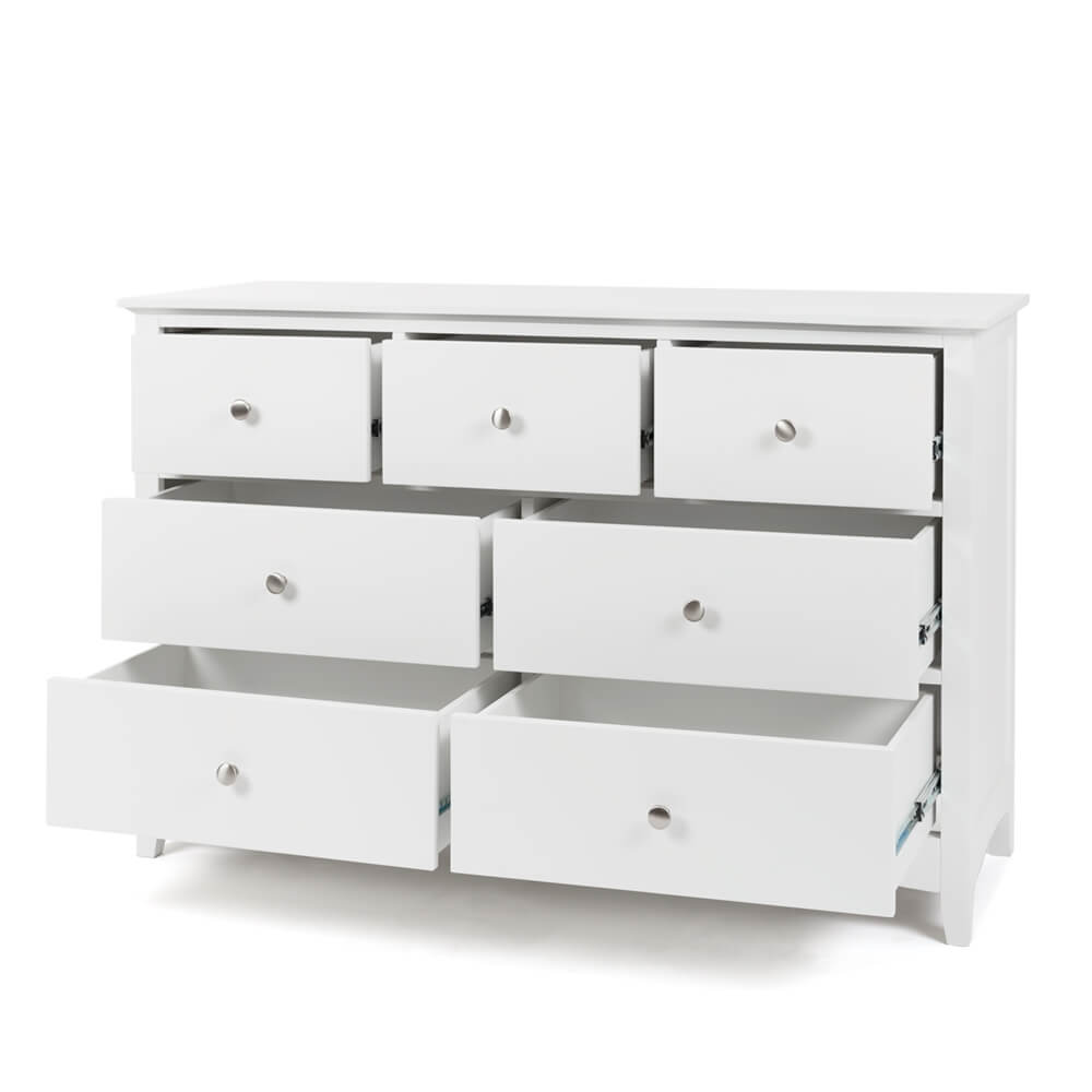 Construction Solid hardwood Acacia framing and MDF panels all coated in a durable satiny smooth white finish. Quality drawer runners and smart stainless knobs (that can be easily removed and replaced with something more fun!).  The Jessica also comes with safety wall fixtures which we highly recommend you attach to stop budding mountaineers scaling her drawers.