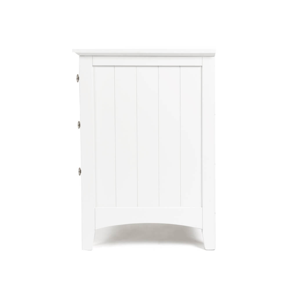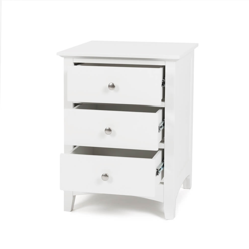Construction Solid hardwood Acacia framing and MDF panels all coated in a durable satiny smooth white finish. Quality drawer runners and smart stainless knobs (that can be easily removed and replaced with something more fun!).  The Jessica also comes with safety wall fixtures which we highly recommend you attach to stop budding mountaineers scaling her drawers.