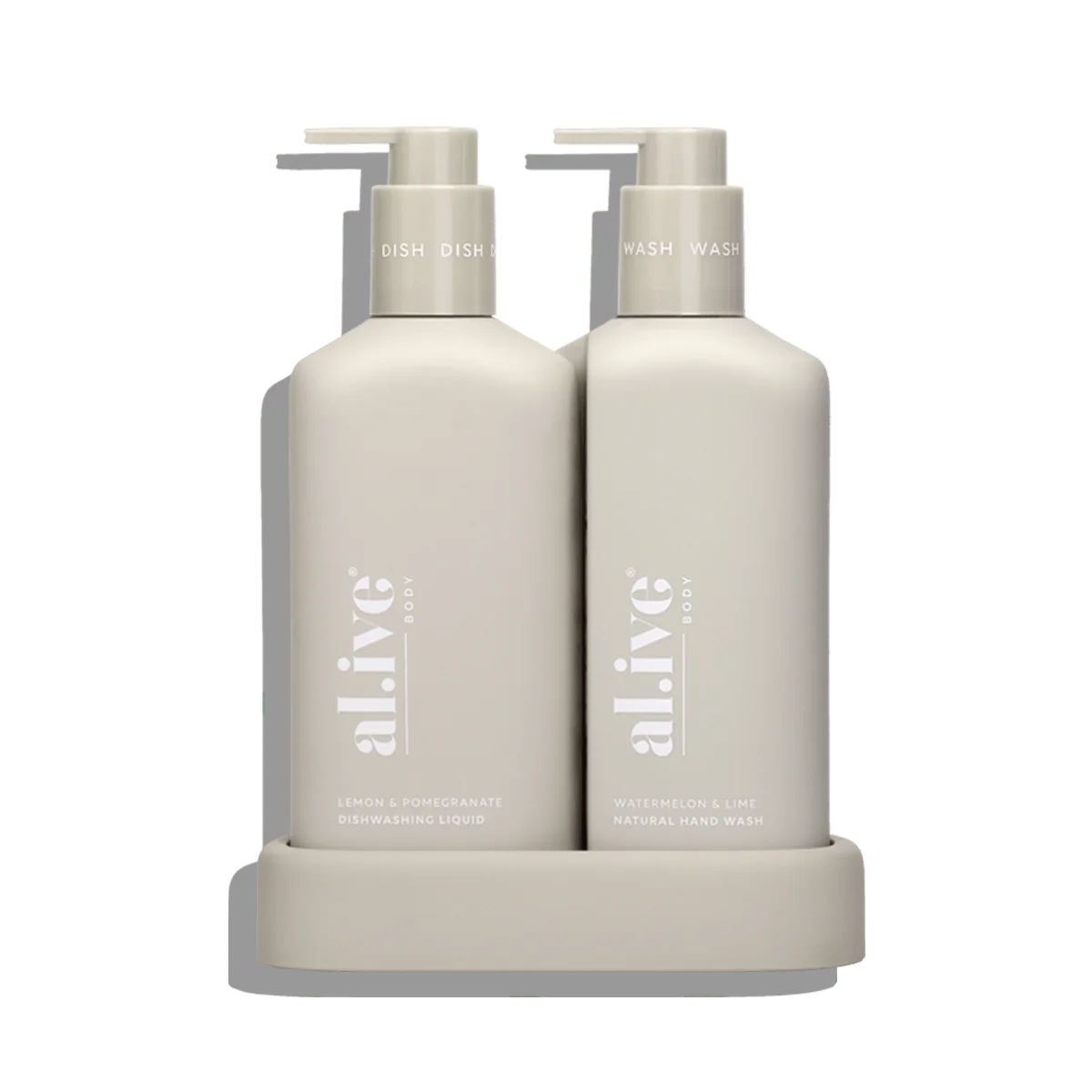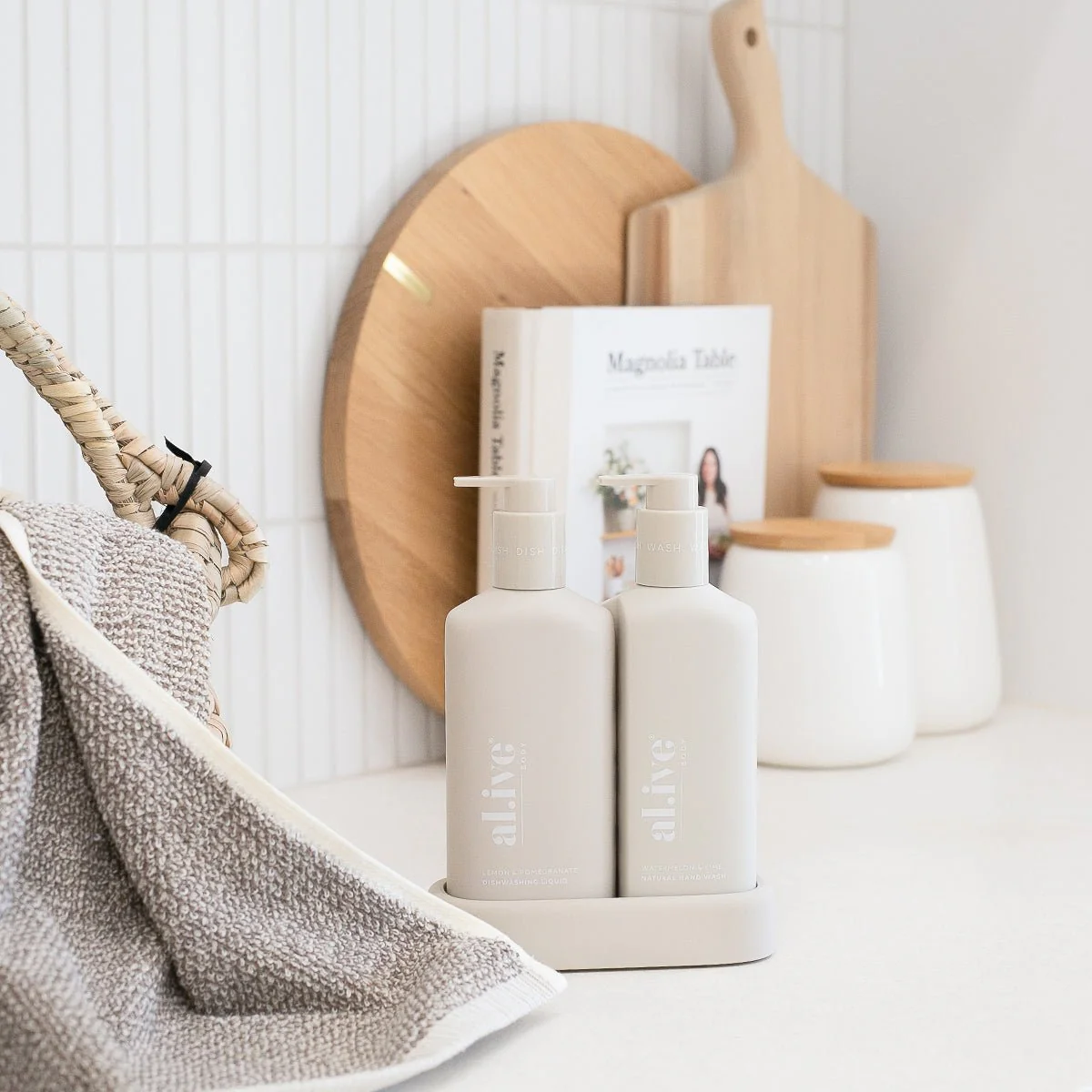 The al.ive body Hand Wash & Dishwashing Liquid Premium Kitchen Duo is a beautiful yet practical product, elegantly packaged to elevate your countertop.