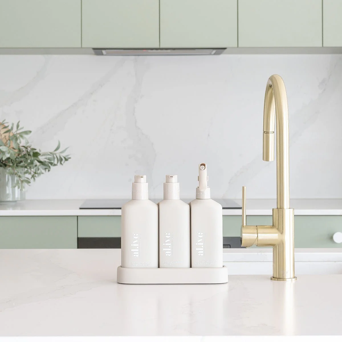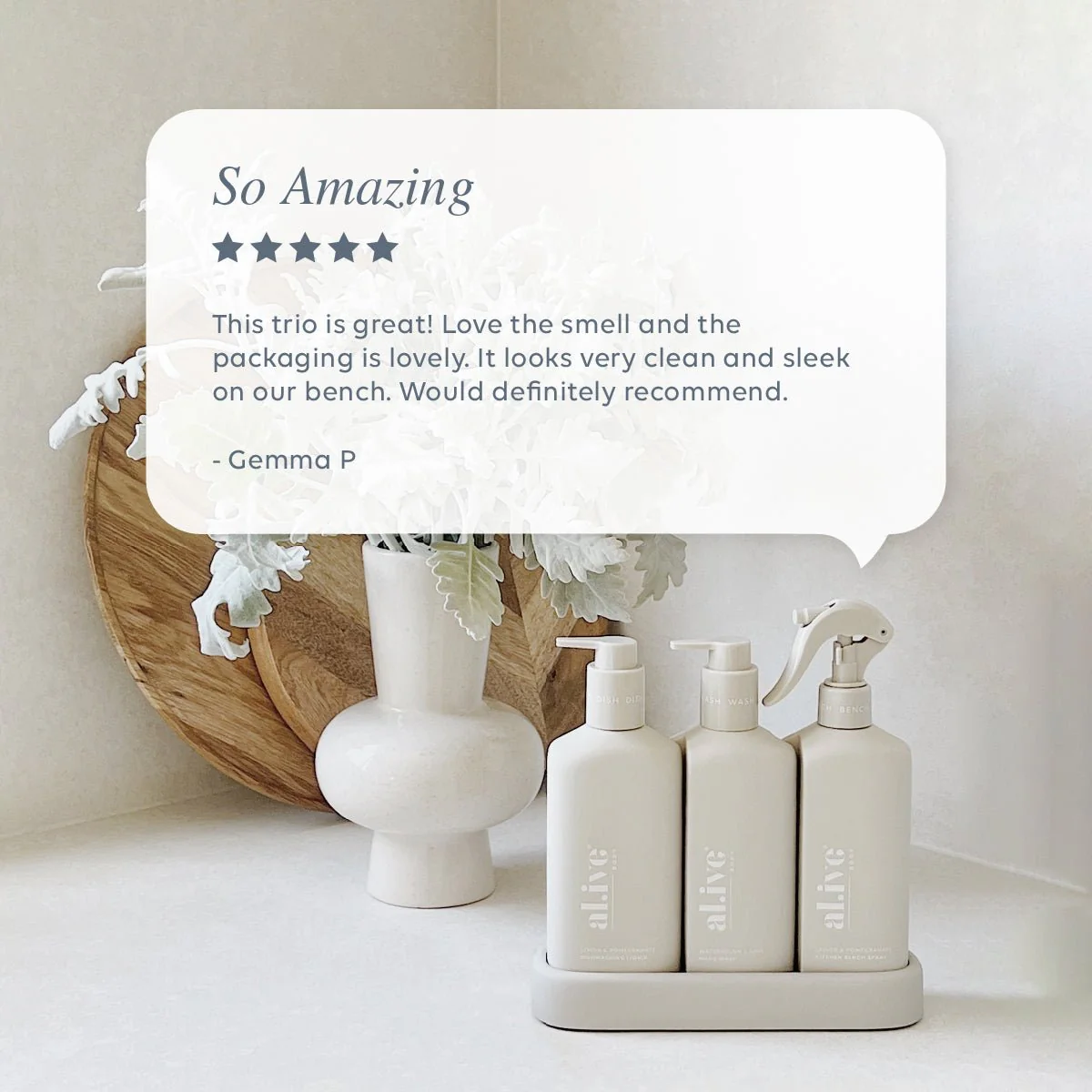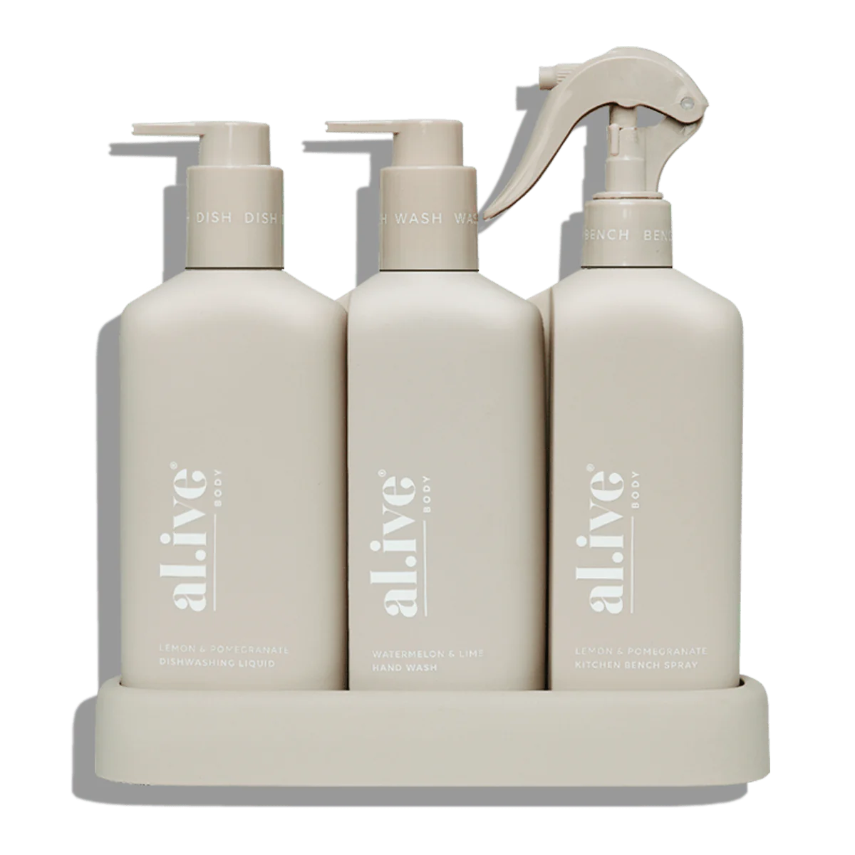Introducing our Kitchen Trio – the ultimate solution for your kitchen cleaning needs. This set includes our Dishwashing Liquid, Bench Spray, and Hand Wash, all conveniently nestled within a beautifully designed custom tray.