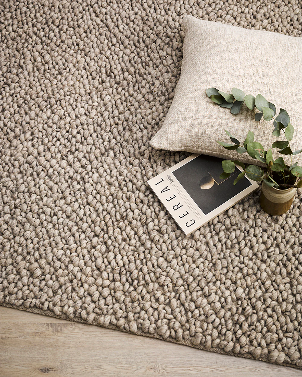 Immerse yourself in the incredible texture of the Mackenzie floor rug. Handcrafted from a blend of New Zealand wool, the generous loop pile feels beautiful underfoot and creates a cosy and relaxed ambiance. The subtle taupe colourway is an effortless addition for a grounded and restorative space.