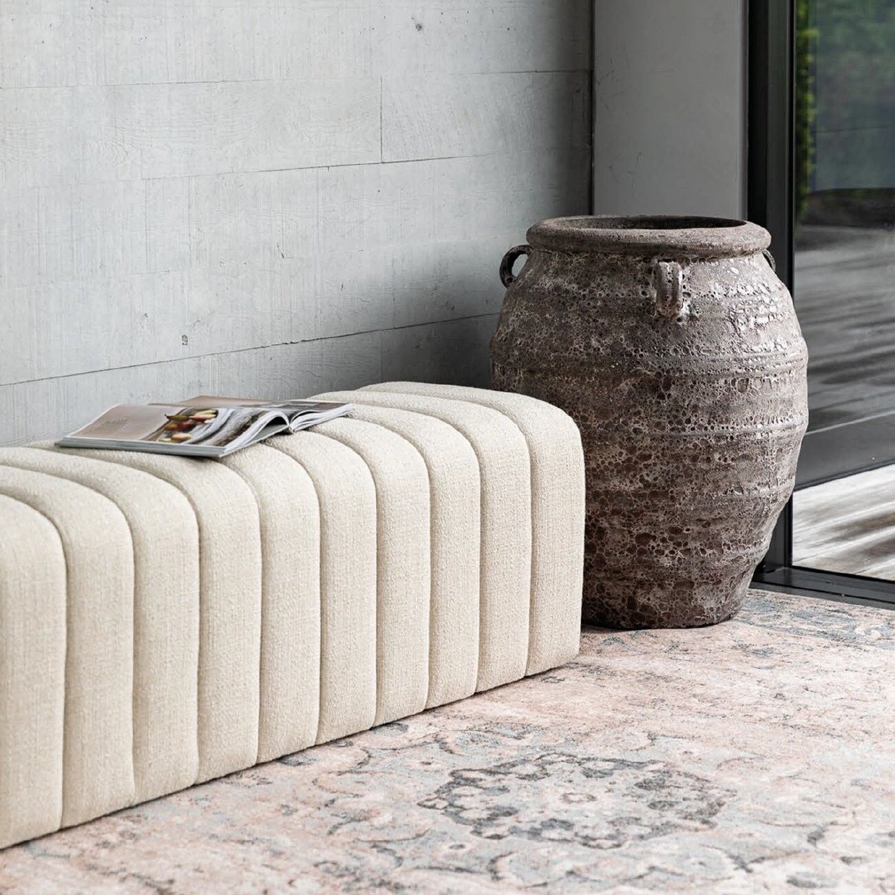 Take your bedroom to the next level with a Mariah bench positioned as a bed end. The perfect spot for changing shoes, the Mariah bench combines contemporary styling and comfort with a beautifully textural alabaster fabric.