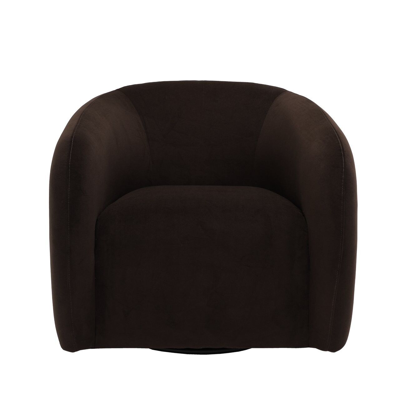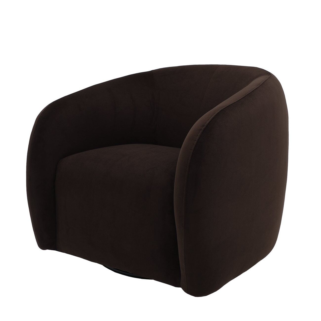 The Max Swivel Chair balances sculpted form, deep comfort, and timeless appeal. A higher back, tapered arms, and generous seat create an inviting, enveloping silhouette, upholstered in a rich chocolate velvet.