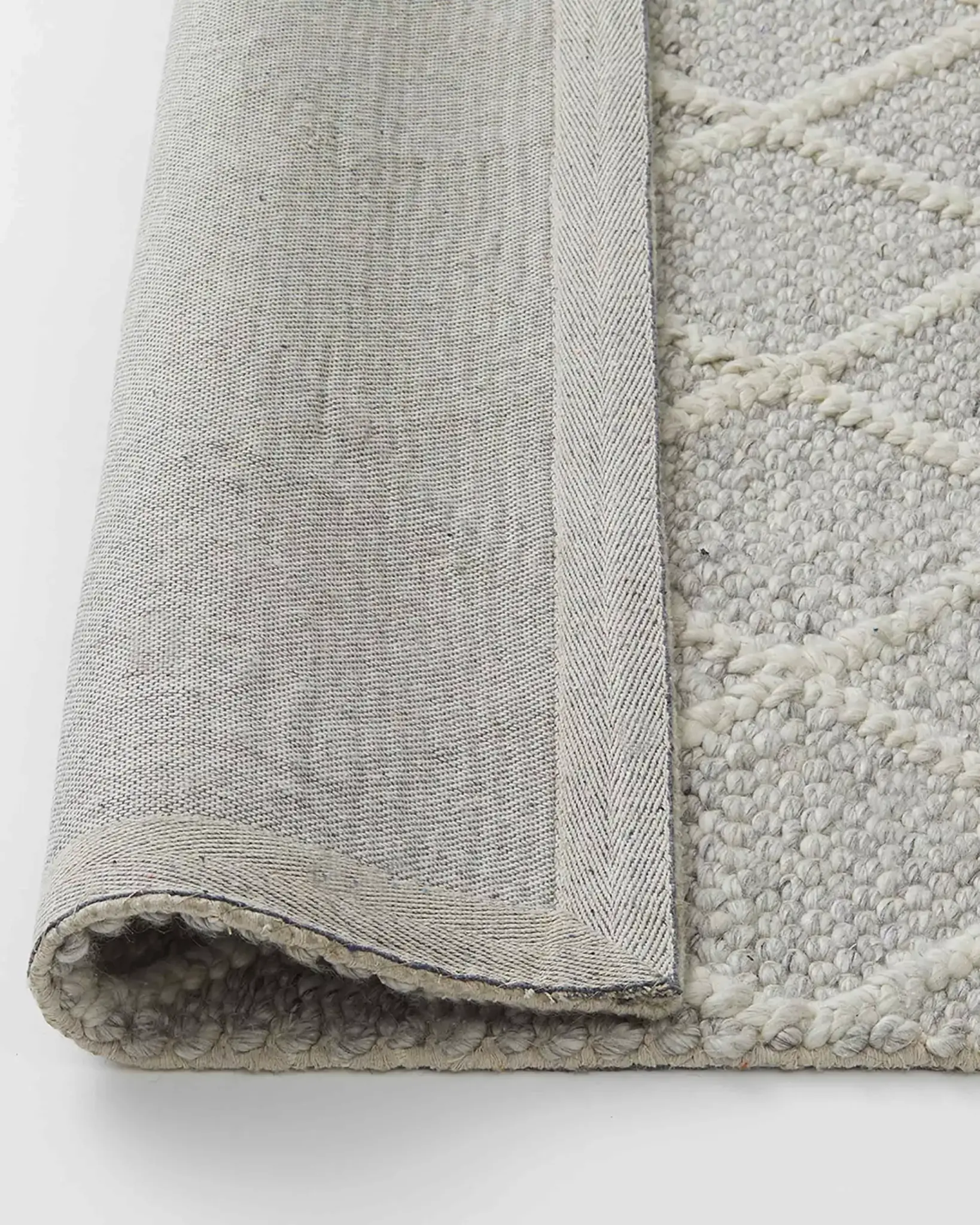 Hand-woven on Panja looms, Mitre is a soft and beautiful rug that features a raised diamond pattern that is overlaid and hand-woven into it in a contrasting colour.