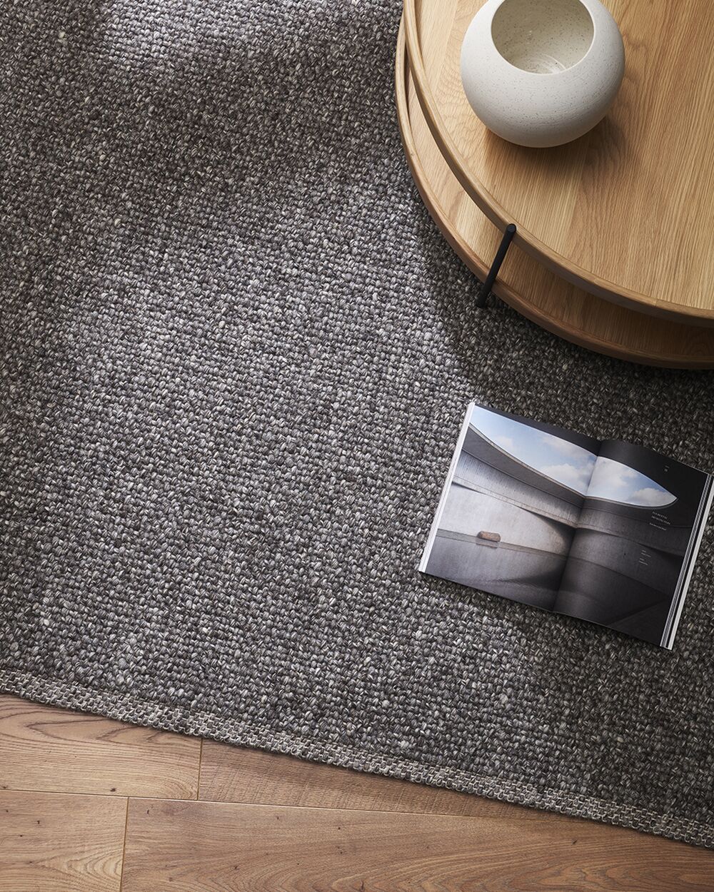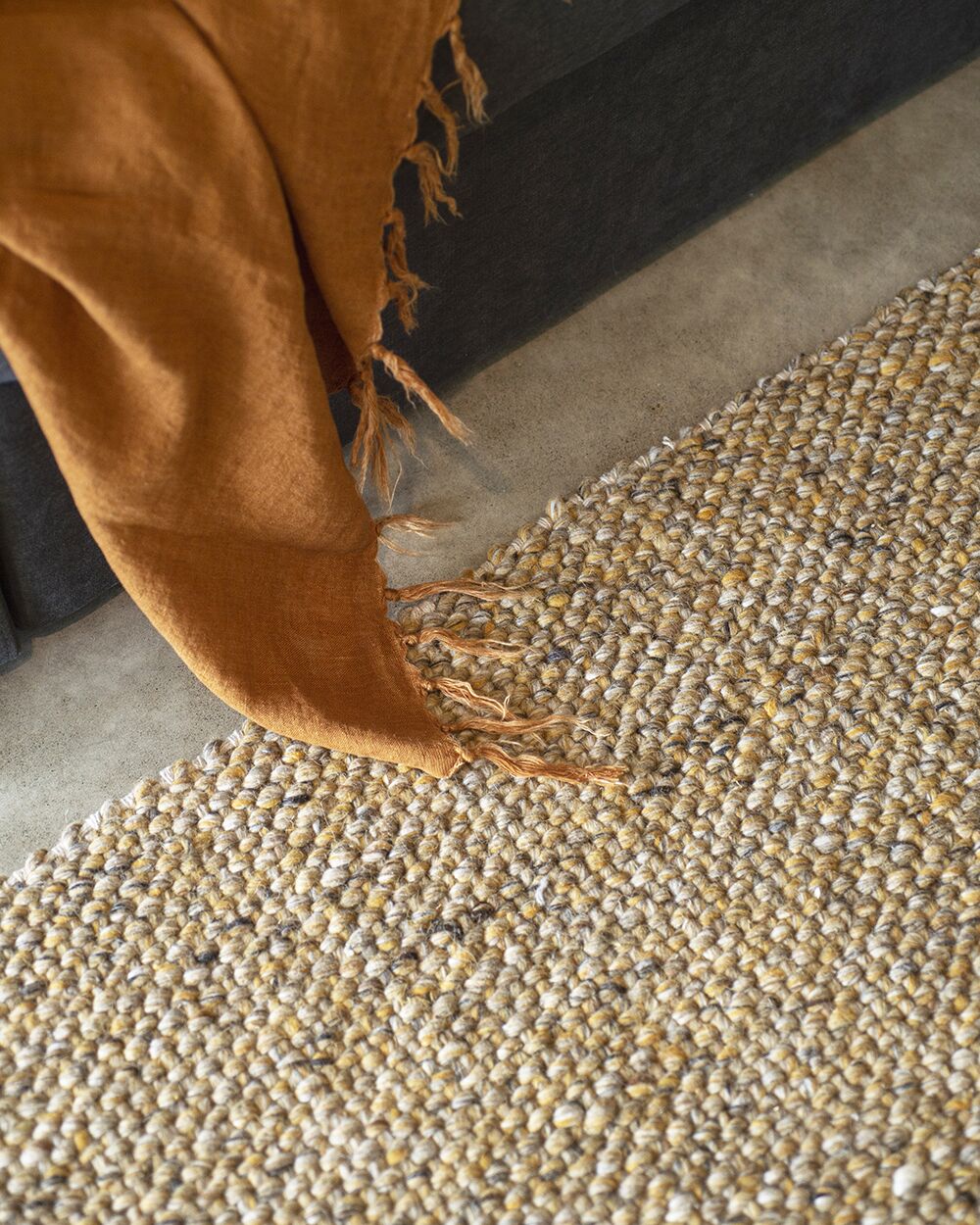 Create a timeless living space with the with the beauty of this wool-blend floor rug in muted charcoal. Handwoven in a simple 1-1 weave, the Nebraska adds warmth and interest with its subtle mottled tones and versatile structure. A staple for contemporary living.
