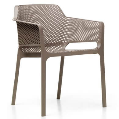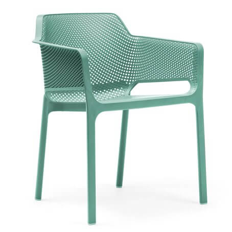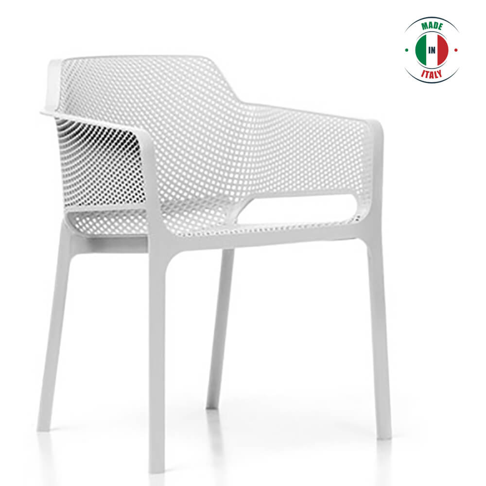 NET outdoor chair sets a new lifestyle trend for open environments, offering a sophisticated way to relax, and a good life indeed that becomes a genuine lifestyle. NET is fiber-glass resin monocoque painstakingly punched with a pattern of square and rounded slots, which are distributed evenly over the three-dimensional surface of the seat.