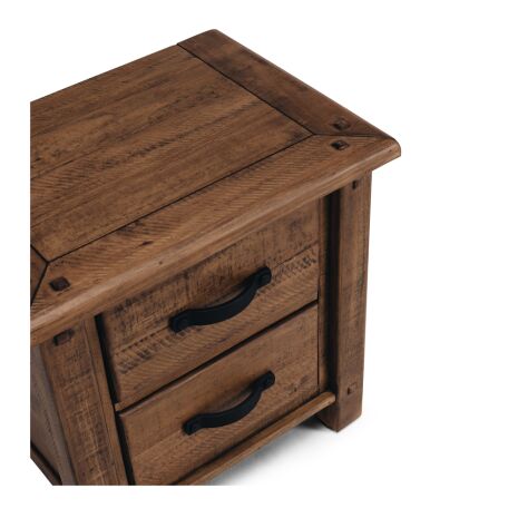 Crafted from solid pine timber and finished in a warm, rustic stain, the Oberon Collection brings timeless character and rugged charm to any space. This sturdy, farmhouse-inspired range blends clean lines with handcrafted detailing, featuring bold black metal handles, visible grain patterns, and natural imperfections that celebrate the wood’s organic beauty.