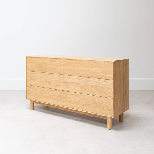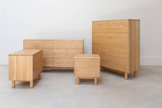 A fresh bedroom suite designed with New Zealand coastal environments in mind, fashioned from solid American White Oak with a timeless design. With smooth rounded legs and refined edging around the drawers.