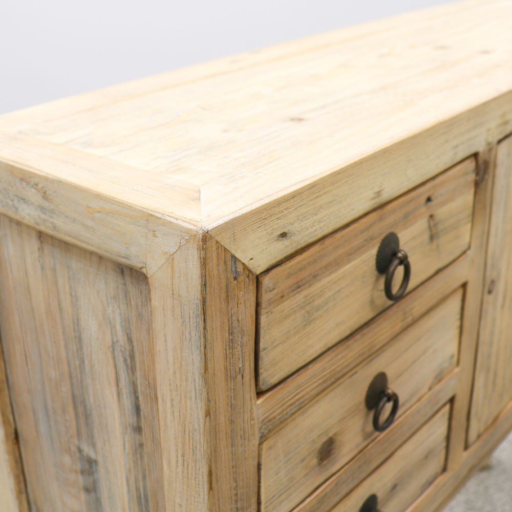 Hand-crafted in reclaimed Pine with a deliberate rustic and distressed finish, complete with notches, nicks and variation in wood grain.