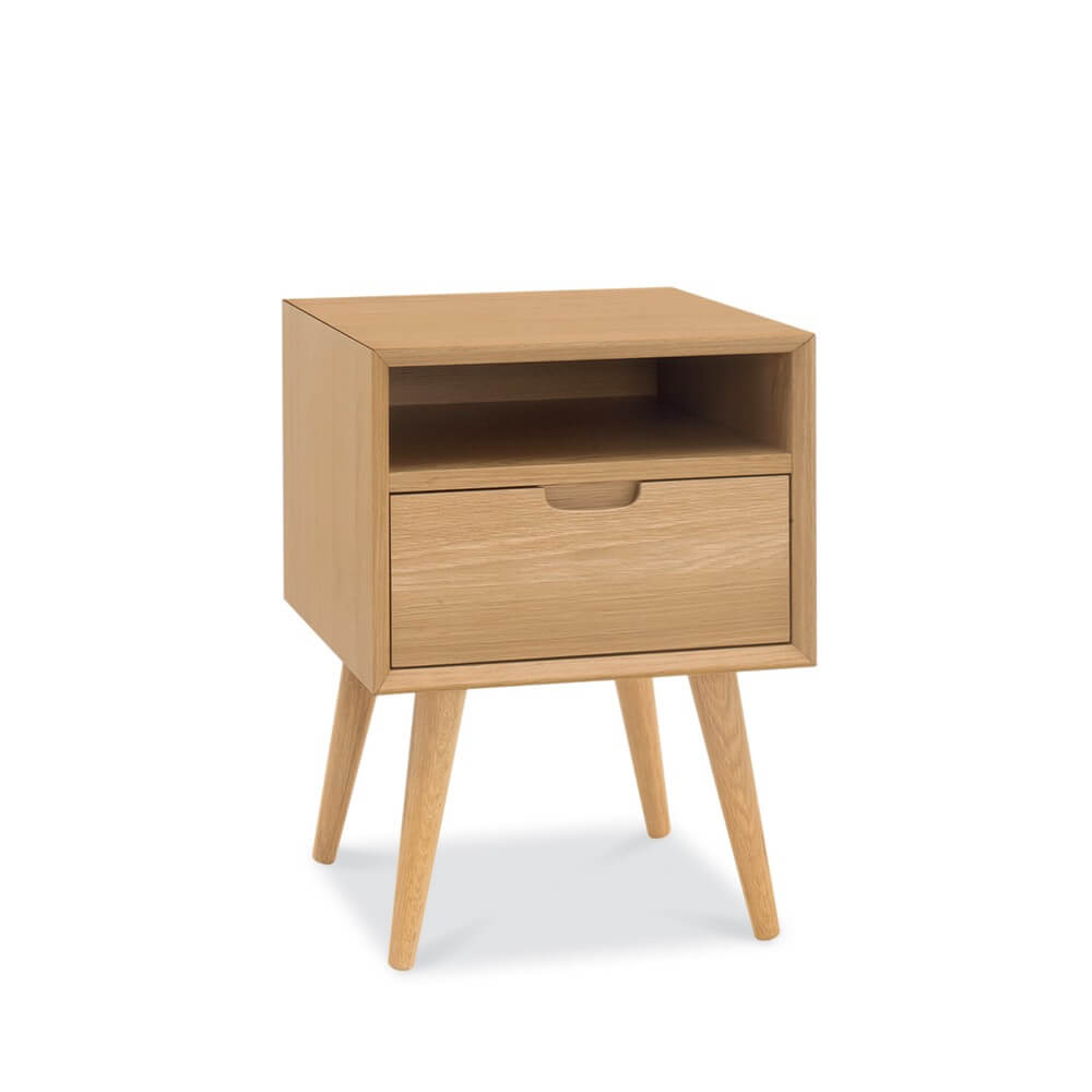 Oslo is a fashionable range that features an eclectic blend of shapes and forms, taking inspiration from sophisticated mid-century styling through hints of both retro and Scandinavian design. Crafted from a combination of oak veneers and sculpted solid oak legs, the Oslo range is characterised by its striking beauty. Attention to detail such as feature handles and engineered mitre joints all contribute to the quality of this range. The option of a stylish veneered back chair with upholstered stone coloured seat pad or distinctive fully upholstered chairs in a choice of five attractively coloured fabrics complete the look of this vibrant range.
