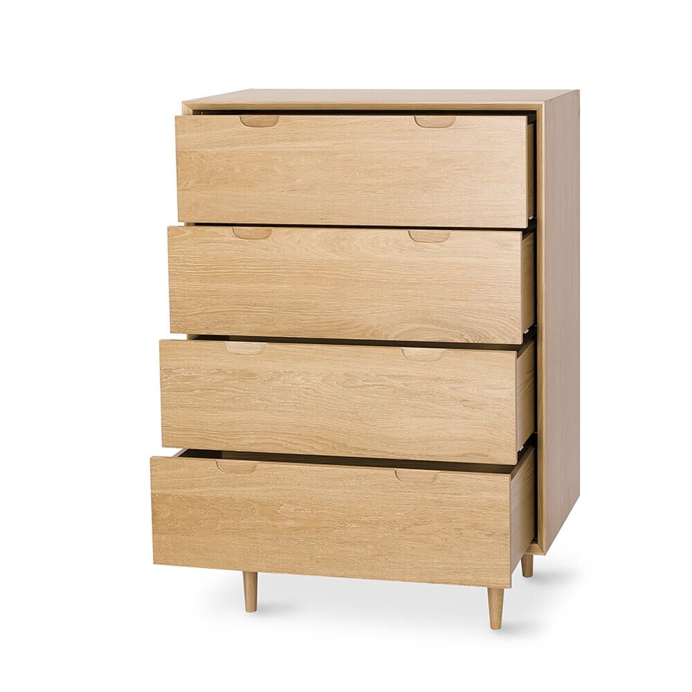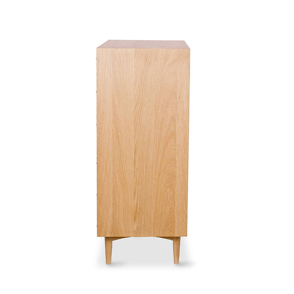 Oslo is a fashionable range that features an eclectic blend of shapes and forms, taking inspiration from sophisticated mid-century styling through hints of both retro and Scandinavian design. Crafted from a combination of oak veneers and sculpted solid oak legs, the Oslo range is characterised by its striking beauty. Attention to detail such as feature handles and engineered mitre joints all contribute to the quality of this range. The option of a stylish veneered back chair with upholstered stone coloured seat pad or distinctive fully upholstered chairs in a choice of five attractively coloured fabrics complete the look of this vibrant range. Design Style Scandinavian Timber Oak Construction Solid Oak with Oak veneers and engineered mitred joints