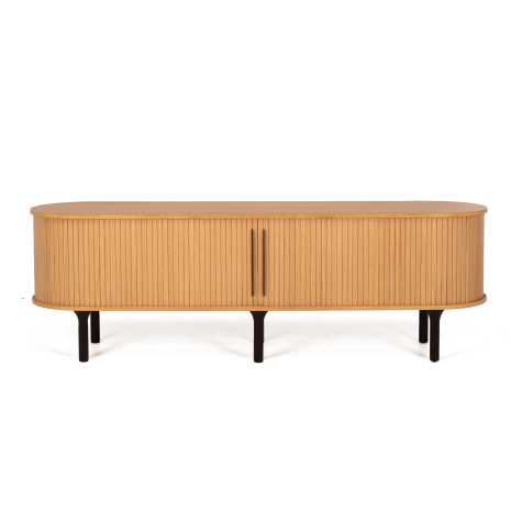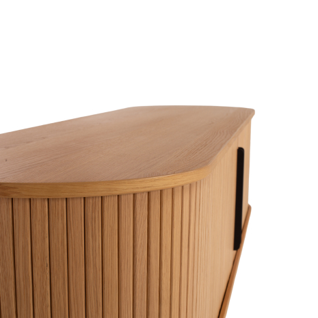 Construction Solid Oak with Oak veneers and engineered mitred joints, high quality hardware and sculpted black timber legs.
