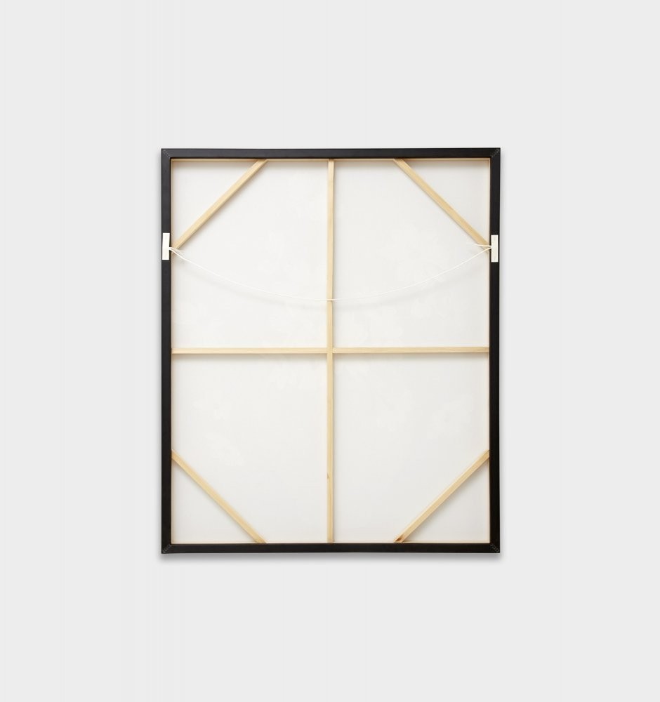 Stretched cotton blend canvas, timber veneer outer frame, pine stretcher backing frame. Strung with cord and ready to hang.