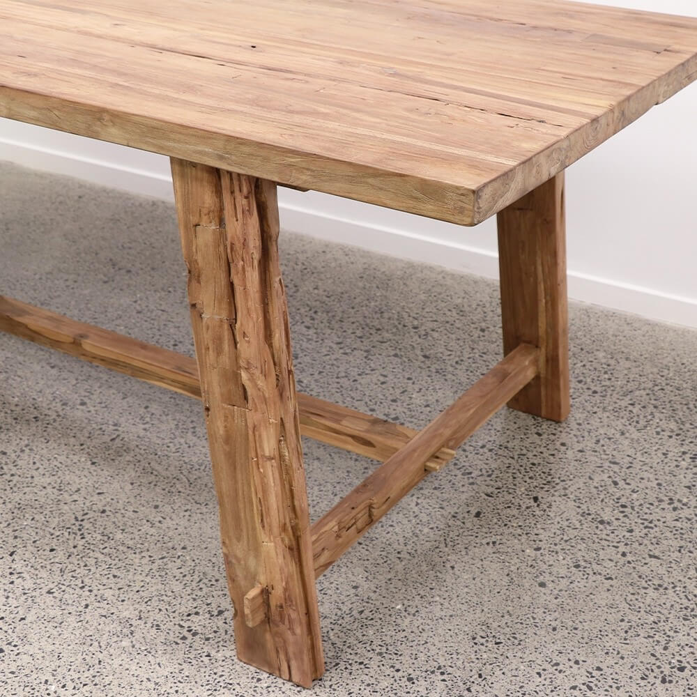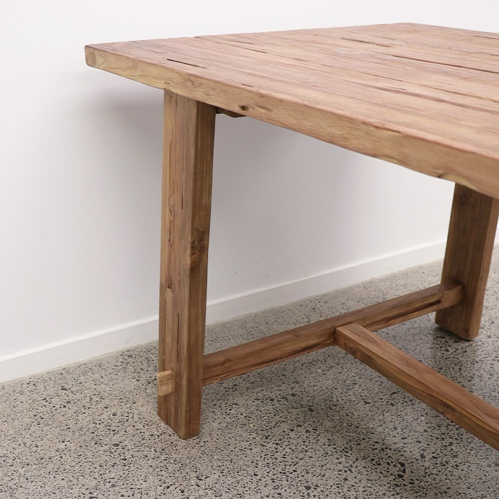 Hand-crafted from Recycled Teak, the Porto Dining Table beautifully exhibits the inherent markings and variations that make recycled timber so beautiful.