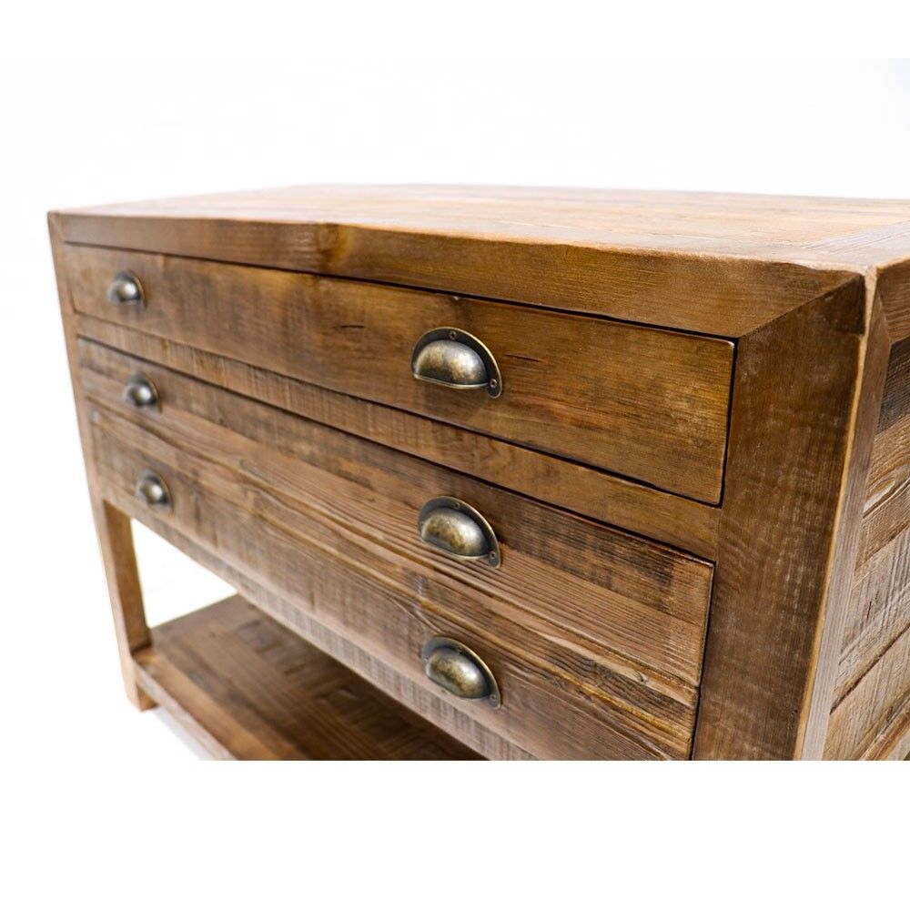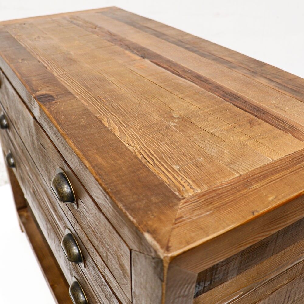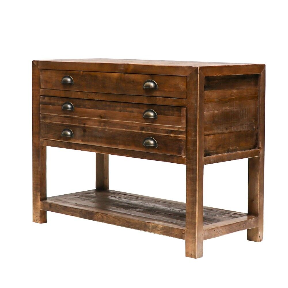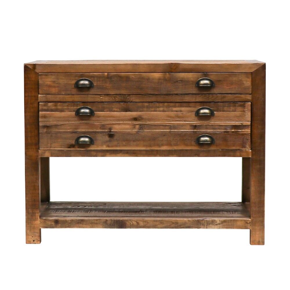 This sideboard is made from reclaimed pine, so each is unique to their own. The 2 drawers offer the capacity for reasonable storage and also make a great design aspect. These fit in well with provincial and industrial settings that feature raw metals and wood but are very versatile and will make a statement in almost any space.