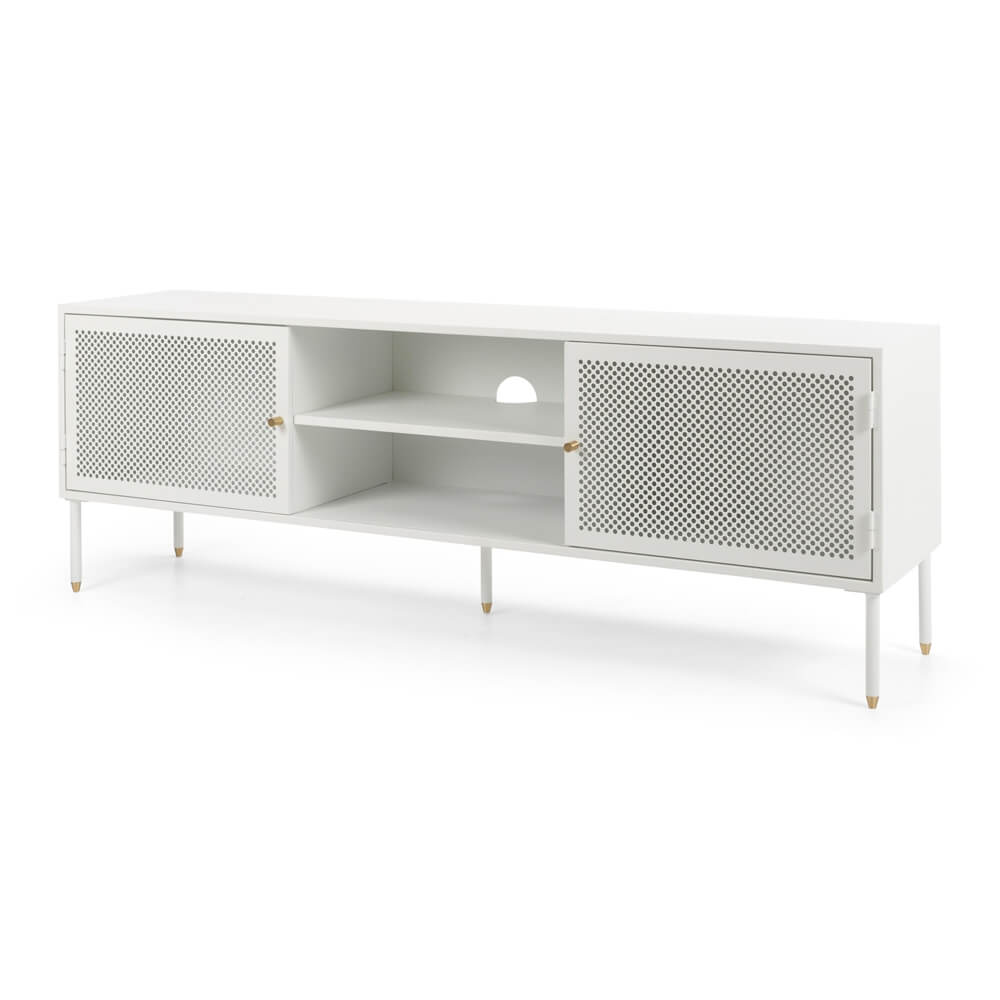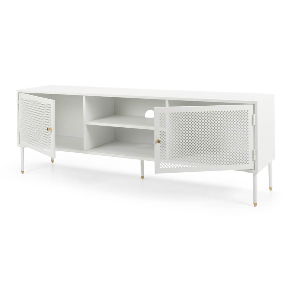 The Dawn range features powder-coated metal, perforated doors and brushed brass accents. Skilfully crafted from sturdy metal and a steel frame the Dawn exudes quality and makes a striking alternative to timber furniture.