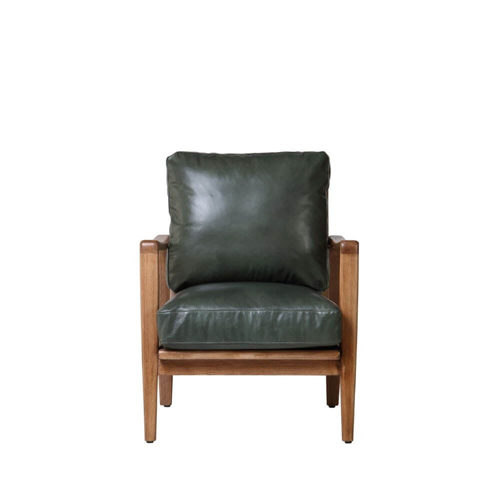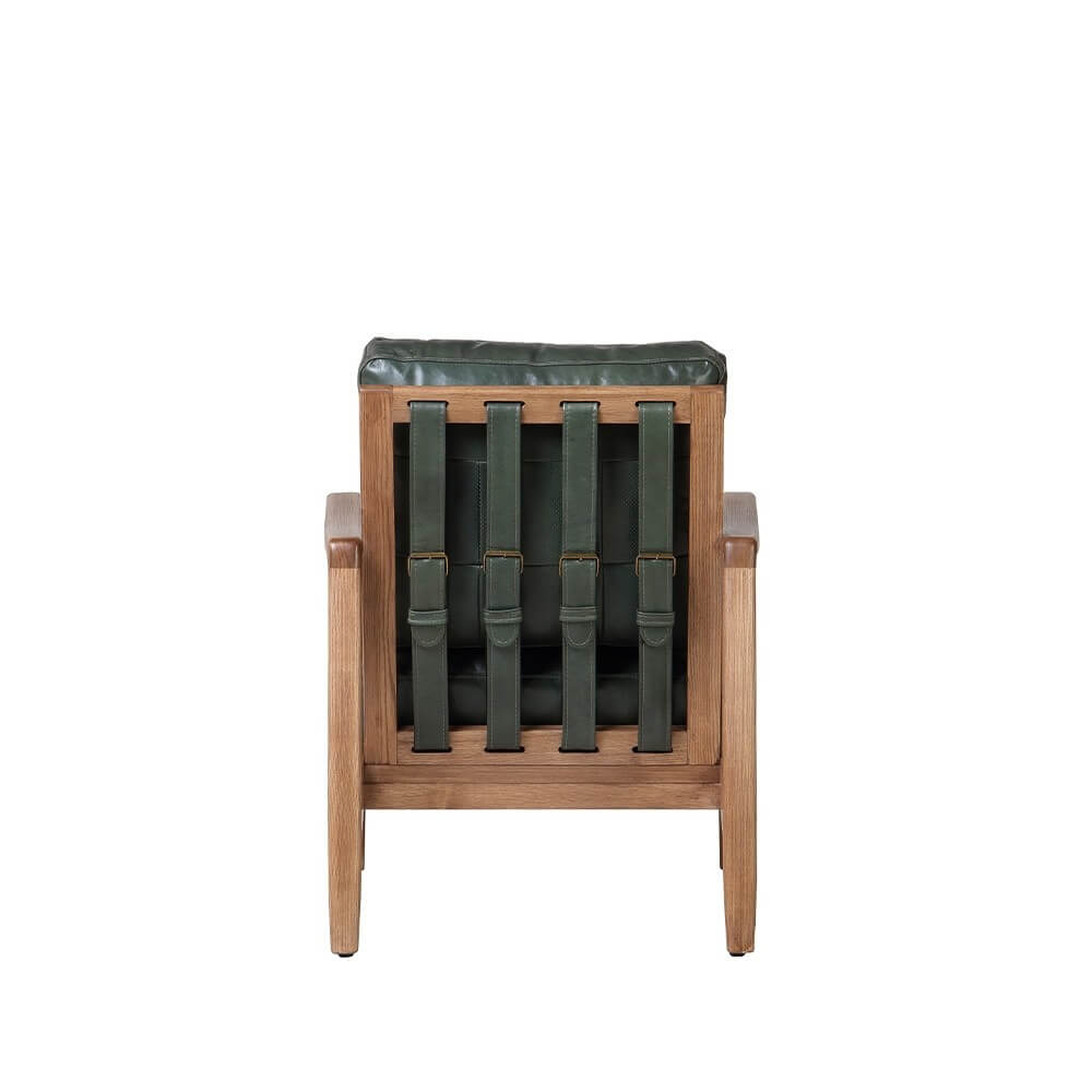 The chair frame is made from beautifully stained American ash wood and the cushions are immaculately upholstered in Italian full grain semi-aniline leather which has been hand-dyed, making each piece unique to itself.