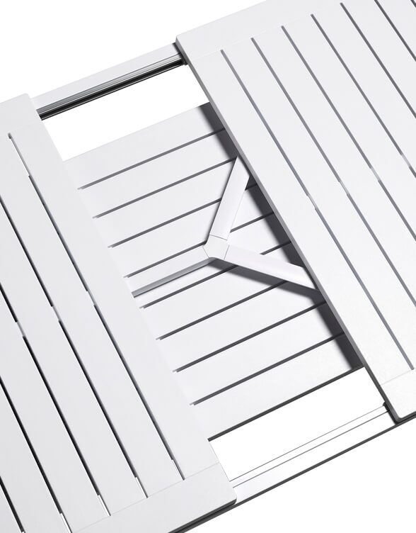 A rigorous design and strong personality define the Rio extendable table with slatted anti-UV resin Durel TOP, batch-dyed with lacquered aluminium structure. Architectural details like the squared leg flush to the edge of the tabletop and the long, evocative series of slats.