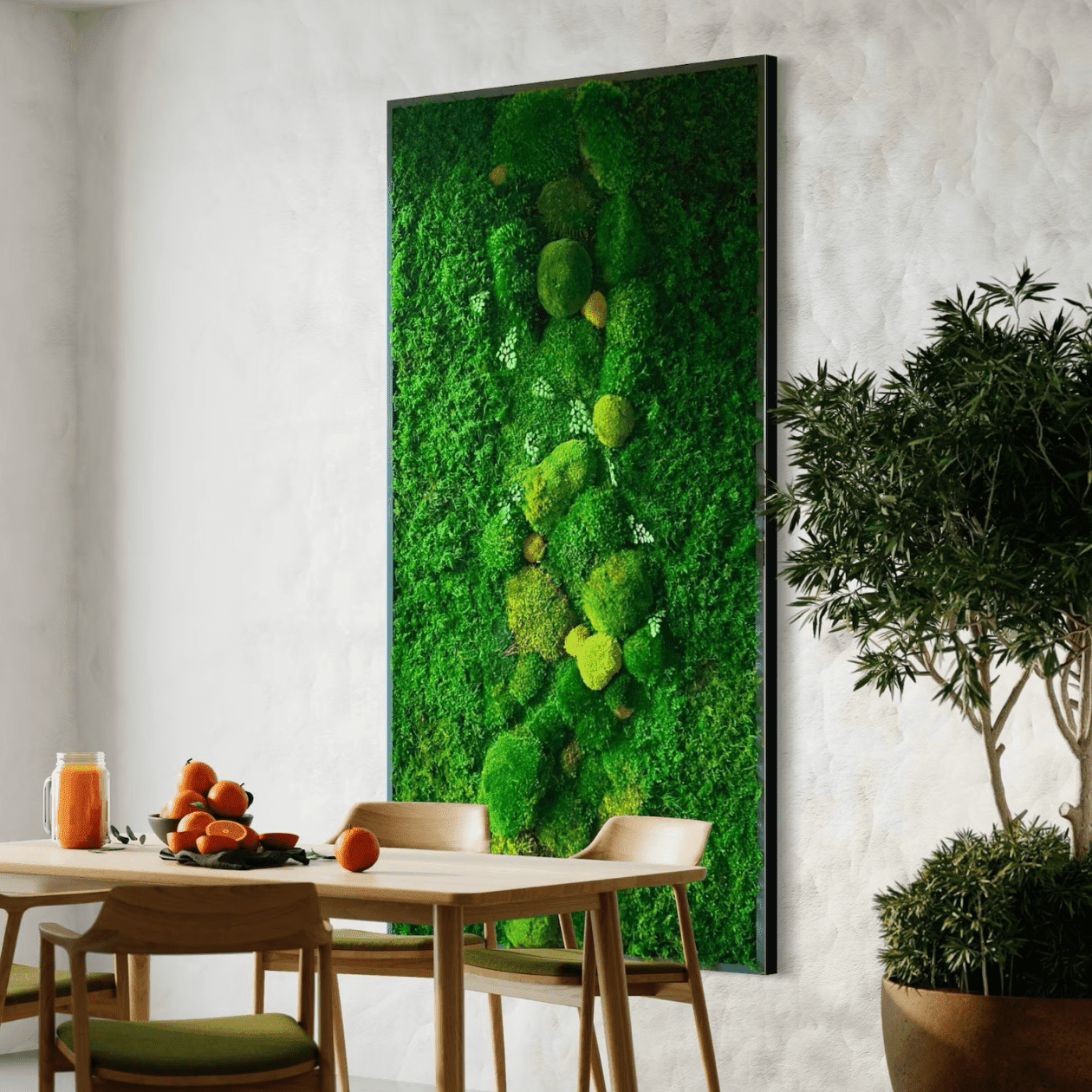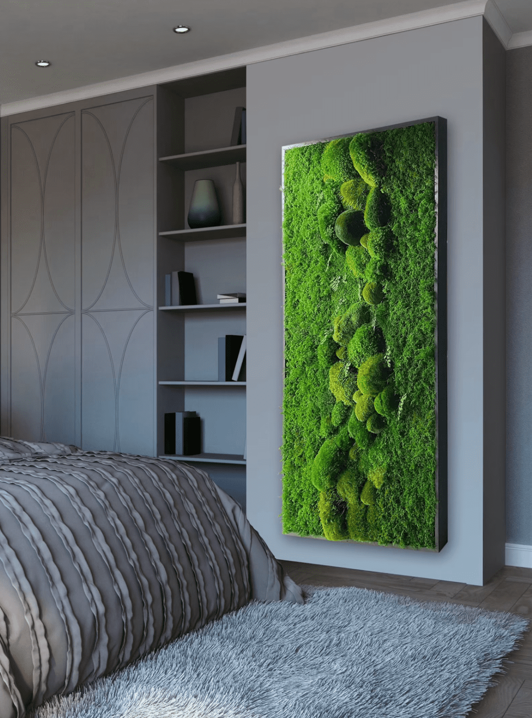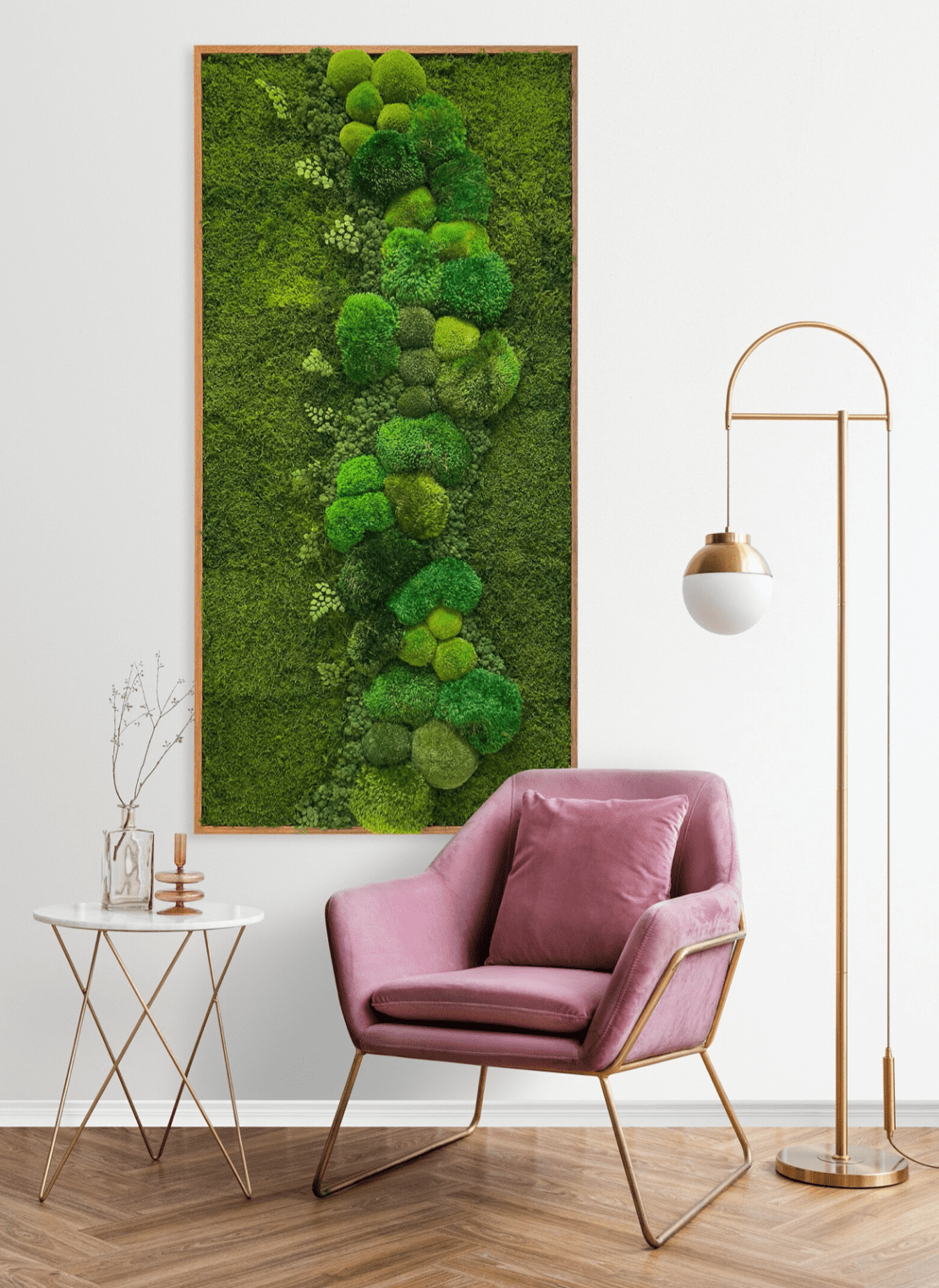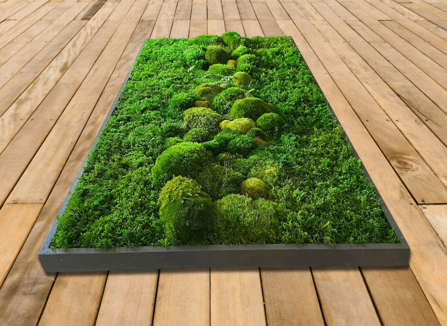 This organic design has a collection of pillow moss, mood moss, fern moss and reindeer moss. It looks amazing both vertically and horizontally.