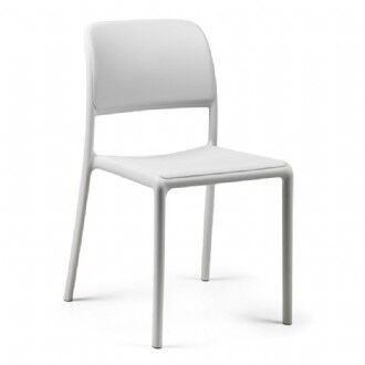 Fibreglass seat without armrests and clean and essential lines. Seamless tubular frame with rounded corners and profile; the seat and back form a single piece. Lightweight, easy to handle and stackable.