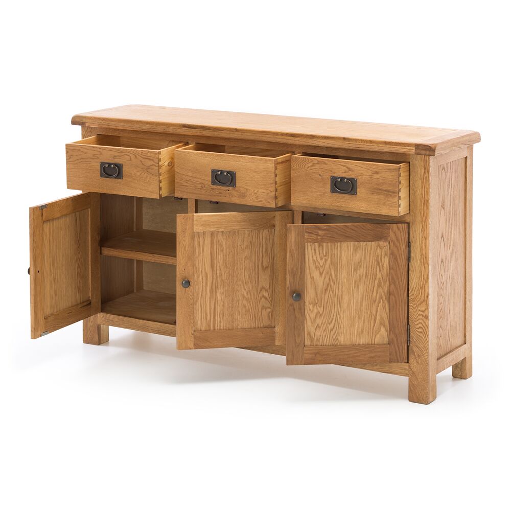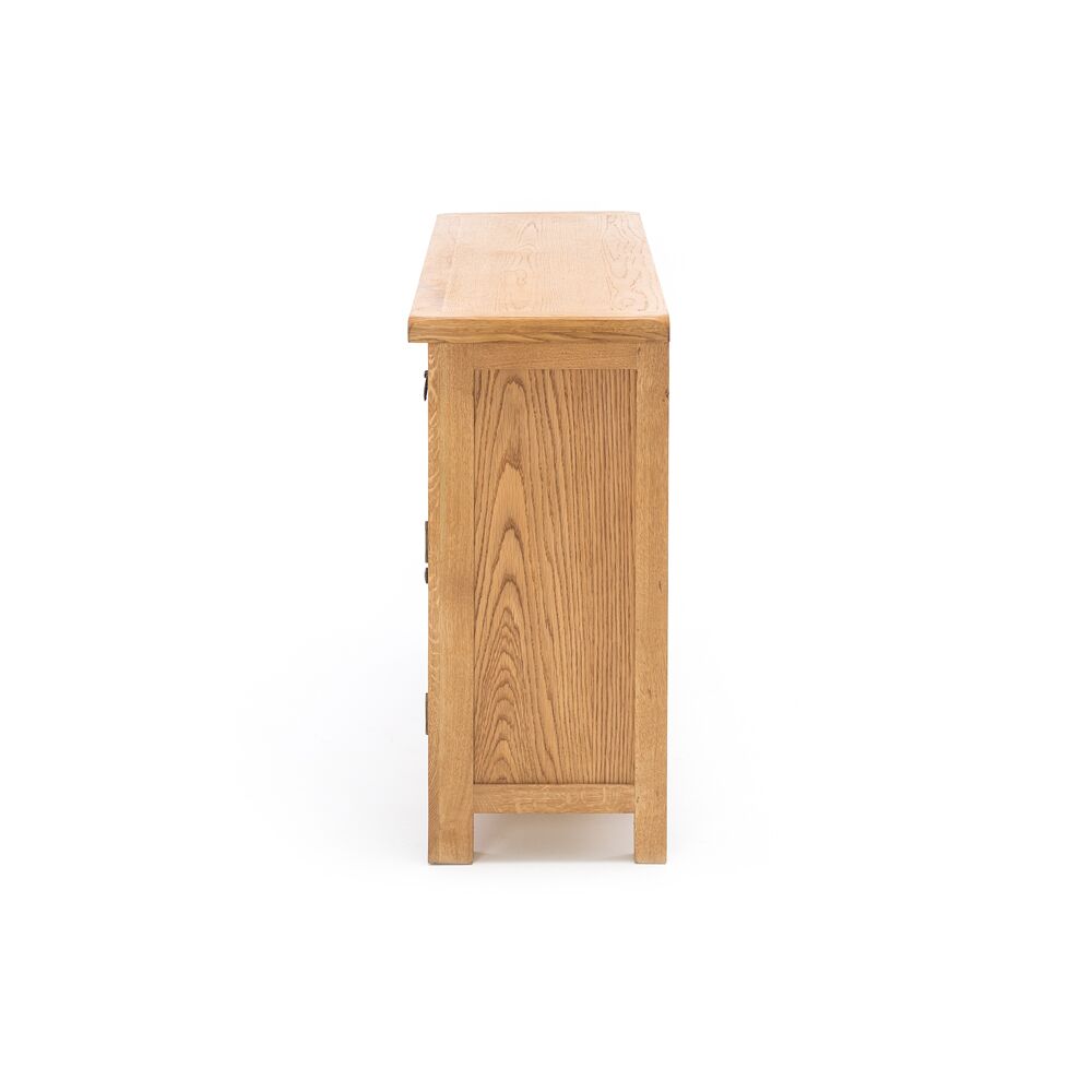 The Salisbury collection is a distinctive and comprehensive range of rustic knotty White oak hardwood furniture with a hand waxed finish. The range’s generous proportions and Classic mission style hardware makes a strong statement in any home. Wood displays different grain patterns depending on which way they are cut – for example, the ‘medullary ray’ which can appear on oak furniture is a mark of good quality timber, these are just characteristics of the natural beauty of the wood. Wood veneers also allow distinctive patterns to be created on some surfaces, such as table tops and drawer fronts by the way slivers are arranged. All timber and veneer surfaces will change colour and mellow over time. New furniture will initially vary in shade from items that have been previously purchased. Rigorously tested for correct measurements, colour, wood moisture (internals included), load bearing and construction strength. Available with Warranty.