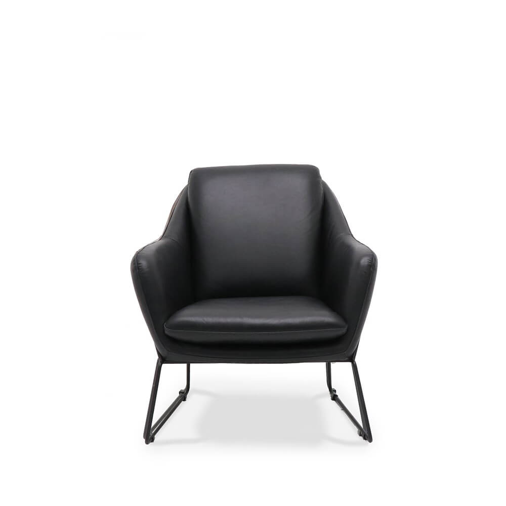 The perfectly formed bucket seat encloses two soft cushions, and is fully upholstered in full-grain antique Black leather.
